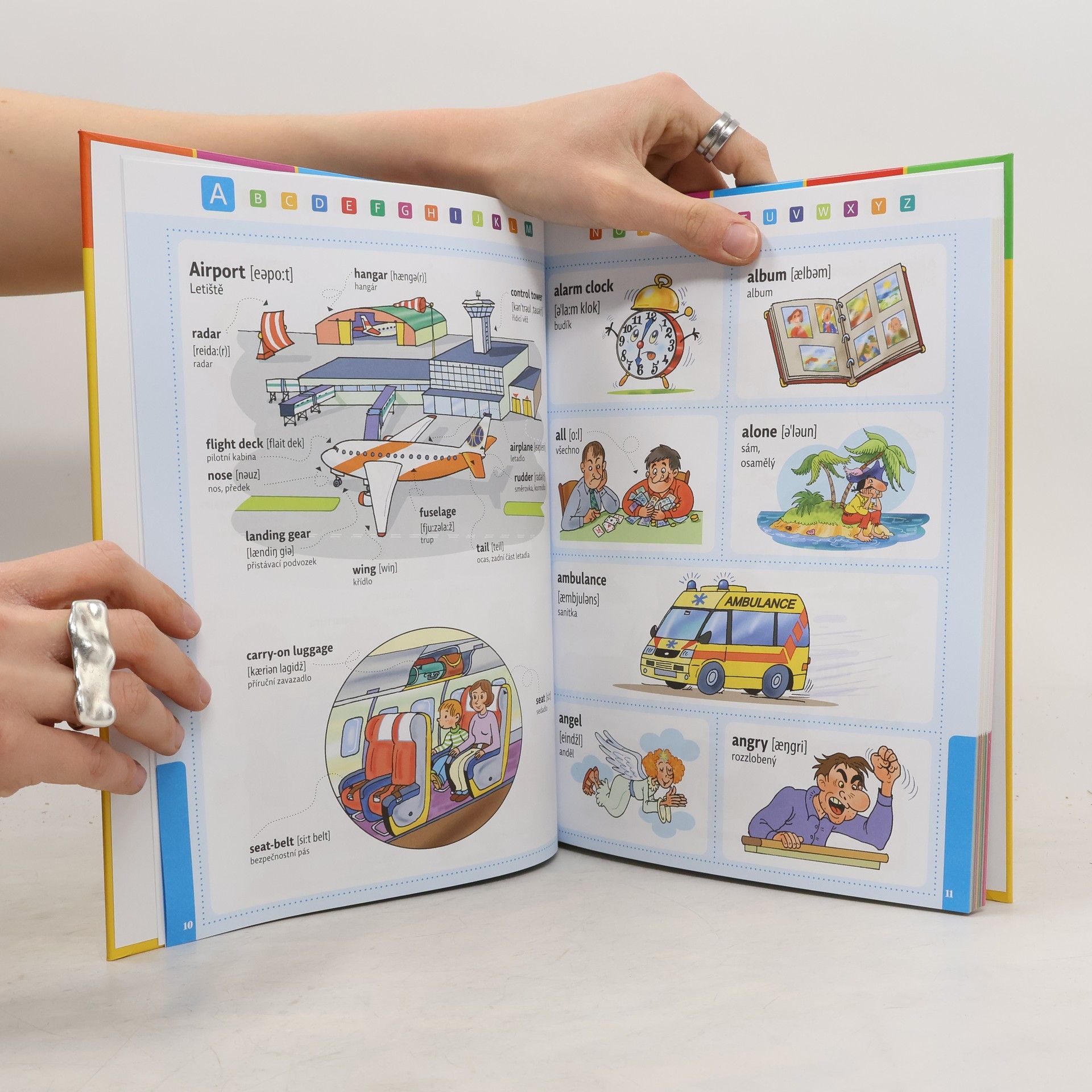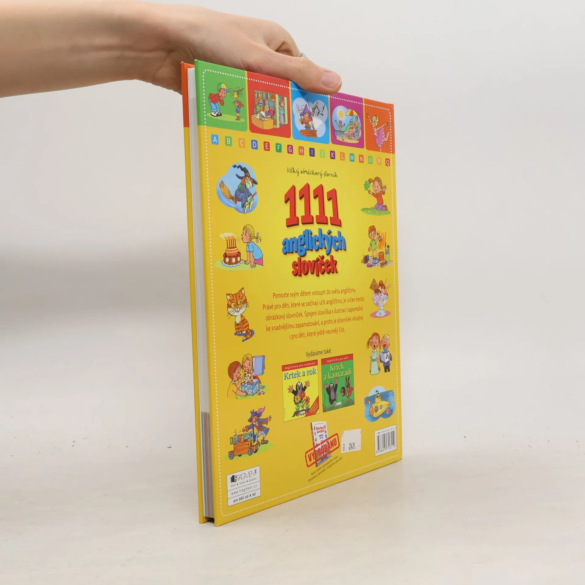 Pomozte svým dětem vstoupit do světa angličtiny. Obrázkový slovníček je určen pro děti, které se právě začínají učit angličtinu. Spojení slovíčka s ilustrací napomáhá ke snadnějšímu zapamatování, a proto je slovníček vhodný i pro děti, které ještě neumějí číst. Slovíčka jsou řazena abecedně, jsou doplněna tematickými stránkami a na konci je rejstřík.