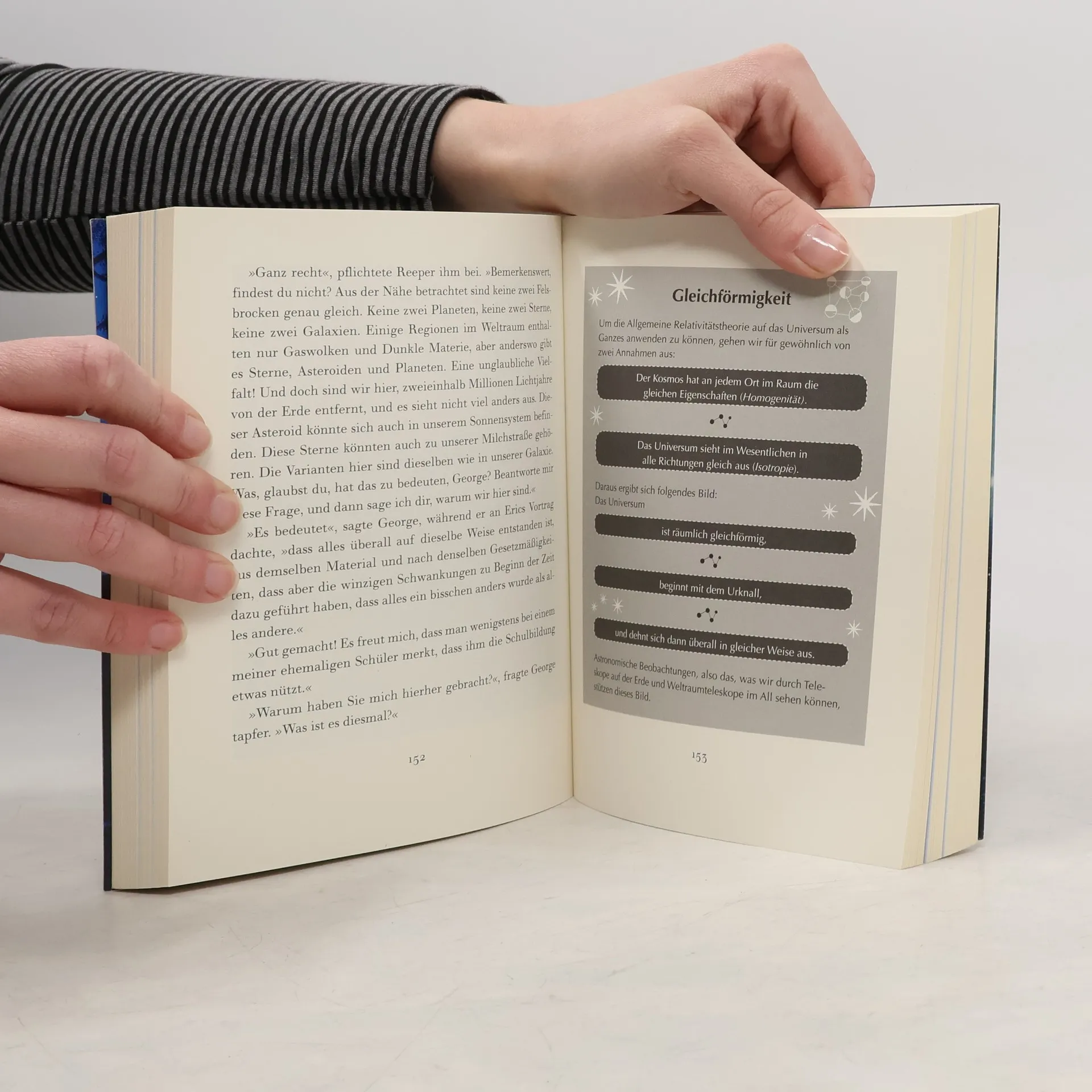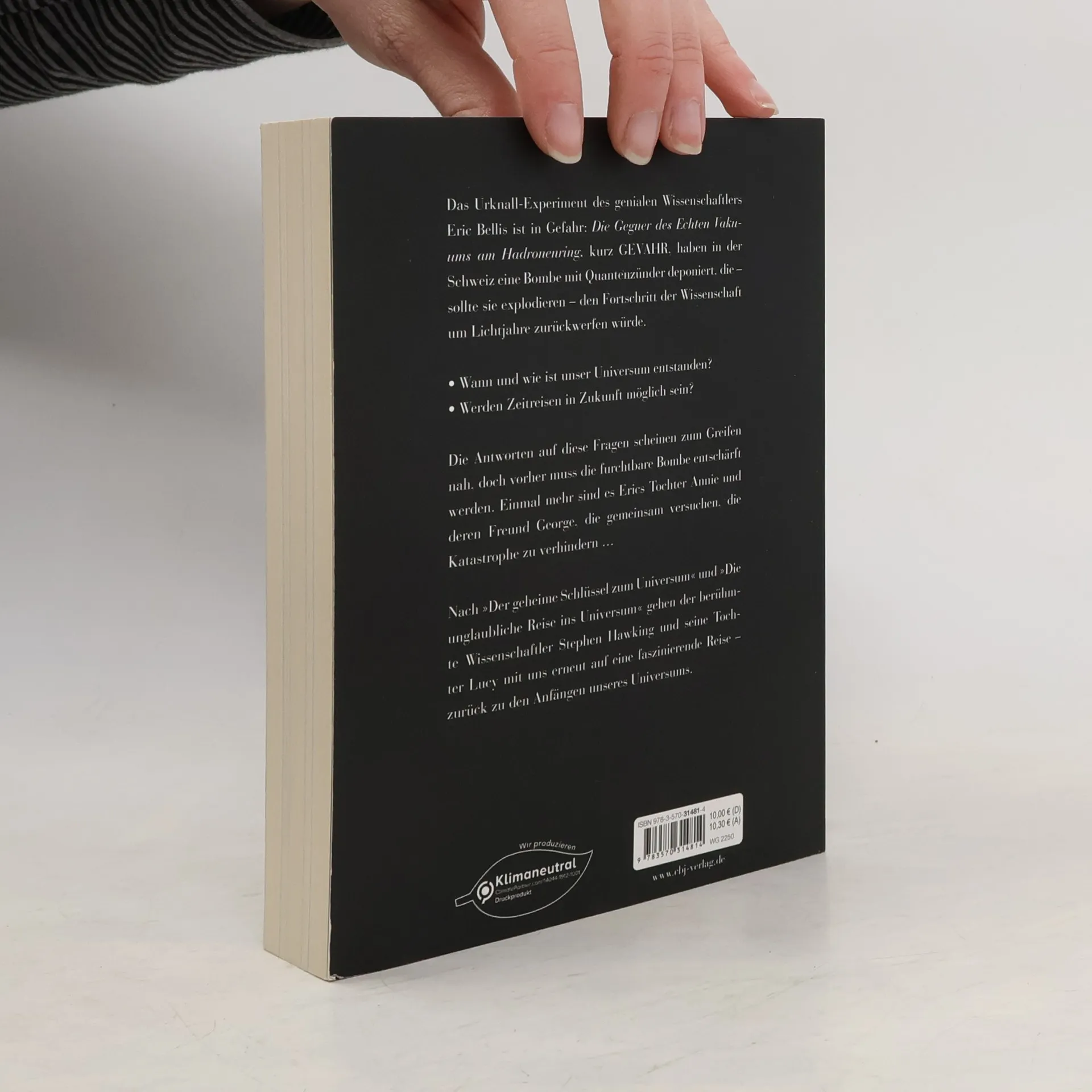 Mit Stephen Hawking den Geheimnissen des Universums auf der Spur George und seine Freunde sitzen in der Klemme: Eric hat mithilfe von Supercomputer Cosmos nicht nur ein Portal für Schwein Freddy geschaffen – er hat George obendrein auf einen Ausflug zum Mond mitgenommen! Zur Strafe droht die Wissenschaftliche Organisation, Cosmos zu beschlagnahmen. Damit ist nicht nur Erics geniales Urknall-Experiment in Gefahr – zu allem Übel wird er auch noch von Professor Zuzubin bedroht! George und Annie wollen Eric unbedingt retten – und kommen hinter eine schreckliche Verschwörung ... Ein fantastisches Weltraum-Abenteuer und zugleich ein Buch über die faszinierende Urknalltheorie. Was ein Wurmloch oder »Schrödingers Katze« ist – Georges neue Reise vermittelt packend quantenphysikalisches Wissen. Spannende Sachinfos und farbige Fotos lassen über die Entstehung des Universums staunen. So begeistert Astrophysik jeden!