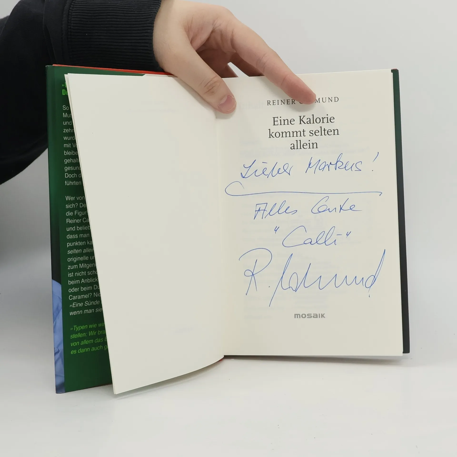 Reiner Calmund ist unverkennbarer Genussmensch „Als Kind wurde ich in Esskur geschickt, weil ich so dünn war.“ Reiner Calmund ist bekennender Genussmensch mit viel Freude am kleinen Bisschen mehr. Und er steht zu seinen Kilos, Leugnen wäre ohnehin zwecklos. „Eine Kalorie kommt selten allein“ besteht aus amüsanten, originellen und humorvollen Geschichten rund ums Rundsein. „Das Dumme ist ja, dass die Kalorien nie als Single daherkommen. Die tauchen immer gleich im Rudel auf.“