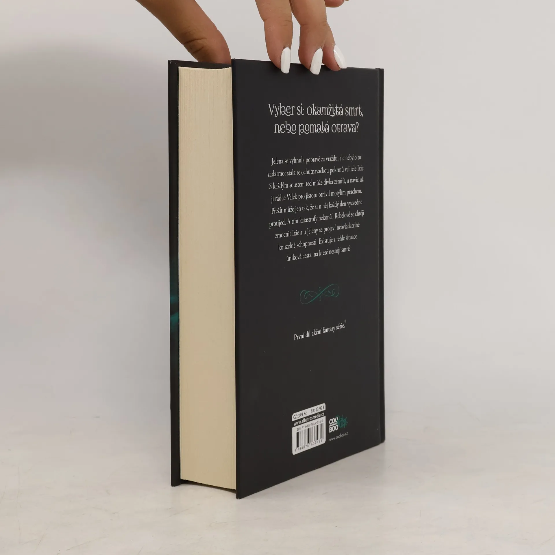 Vyber si: okamžitá smrt, nebo pomalá otrava? Začátek akční fantasy série. Jelena se vyhnula popravě za vraždu, ale nebylo to zadarmo: stala se ochutnavačkou pokrmů velitele Ixie. S každým soustem teď může dívka zemřít, a navíc už ji rádce Valek pro jistotu otrávil motýlím prachem. Přežít může jen tak, že si u něj každý den vyzvedne protijed. A tím katastrofy nekončí. Rebelové se chtějí zmocnit Ixie a u Jeleny se projeví neovladatelné kouzelné schopnosti. Existuje z téhle situace úniková cesta, na které nestojí smrt?