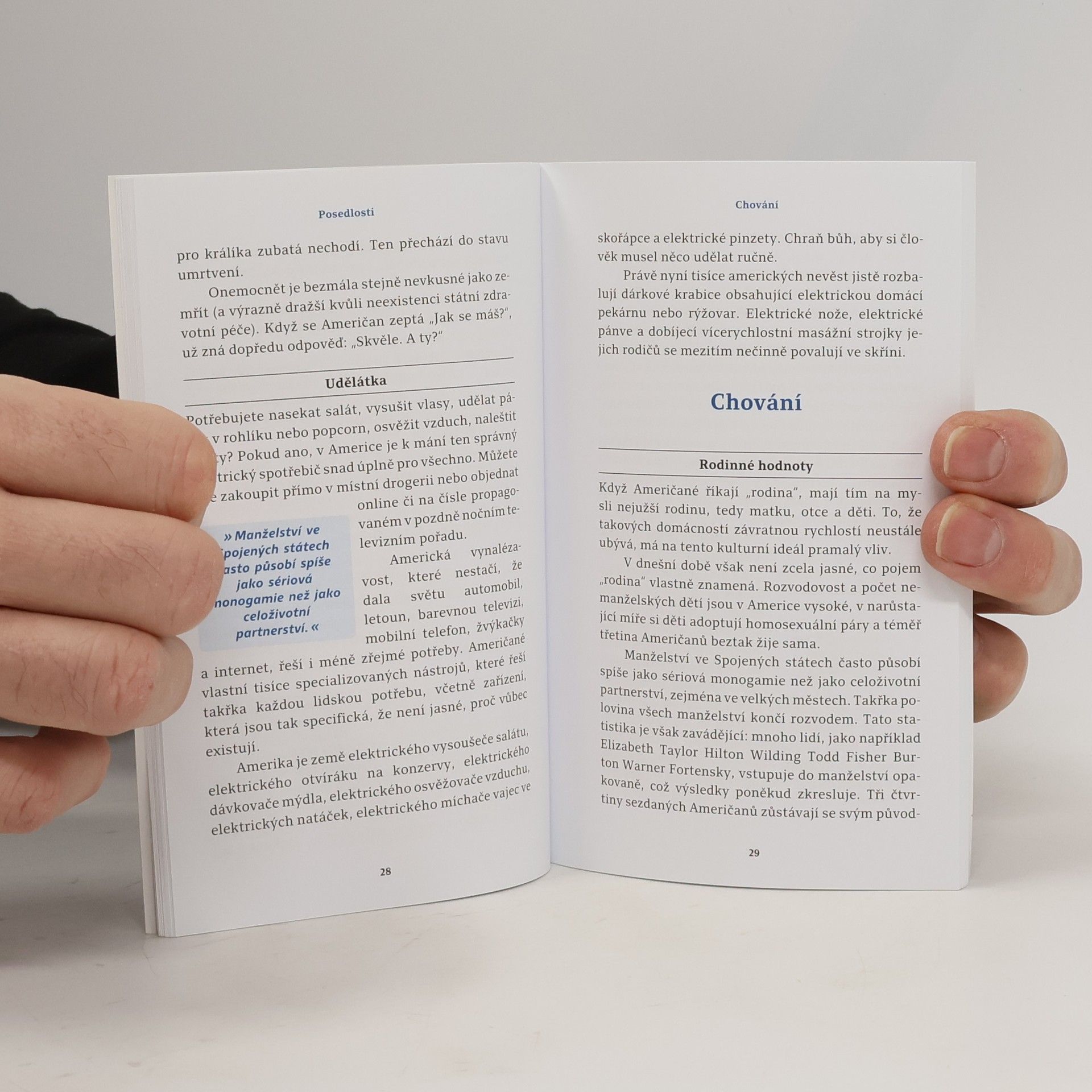 Nový zábavný průvodce popisuje povahu a životní styl Američanů, přičemž se zaměřuje na detaily jejich každodenního života, víry a fungování rodiny a společnosti. Zjistíte, proč si v Americe tolik zakládají na osobních právech a jaký význam mají sport, peníze, krása a úspěch. Američané se pyšní svou odlišností, a jako národ přistěhovalců mohou být jakékoli etnické příslušnosti. Zajímavostí je, že tráví více času u zubaře, což se projevuje v jejich úsměvech. Být nejlepším je pro Američany klíčové; každá událost je konstruována tak, aby měla vítěze. Věří, že jsou jediným národem schopným skutečně vítězit, což přispívá k jejich dobrému pocitu. Optimismus je pro ně důležitý, a snaží se najít světlou stránku i v těžkých chvílích. Všechny aspekty jejich života jsou ovlivněny faktorem dobrého pocitu, přičemž peníze, krása a úspěch jsou klíčovými měřítky. Američané touží být štíhlí a bohatí, i když průměrný člověk takový není. Tento průvodce nabízí zábavný pohled na každodenní život a povahu Američanů, což usnadňuje porozumění a navazování kontaktu s nimi. Nechte se inspirovat a objevte americký sen.