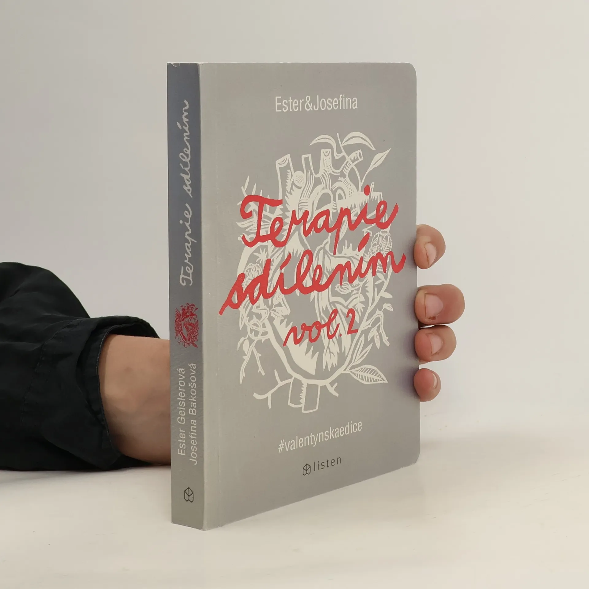 Ester Geislerová a Josefina Bakošová zahájily na sociálních sítích revoluci. Zveřejnily několik mrazivých a zároveň cynický úsměv vzbuzujících vět, kterými se jistý muž rozešel s jejich kamarádkou. Toto malé gesto spustilo lavinu; během následujících týdnů jim čtenáři začali posílat své rozchodové věty. Hashtag „terapie sdilenim“ se stal doslova kultovním a rozčísl poklidnou českou hladinku sociálních sítí naprosto nečekaným způsobem. Miliony lidí najednou získaly pocit, že nejsou ve virtuálním světě na reálné vztahy samy a že někteří jsou na tom vlastně ještě mnohem hůř než oni. Terapie zabrala. Netrvalo dlouho a vznikla kniha, která byla naprosto věrným obrazem autentického prostředí chatů a messengerů, kde se často odehrávají začátky, ale také konce vztahů. Kniha zaznamenala tak velký úspěch, že její pokračovaní bylo jen otázkou času. Terapie sdílením: Valentýnská edice je na světě! Tentokrát nejen o trpkém rozcházení, ale také o vztazích jako takových – někdy úsměvných a někdy až krutě smutných.