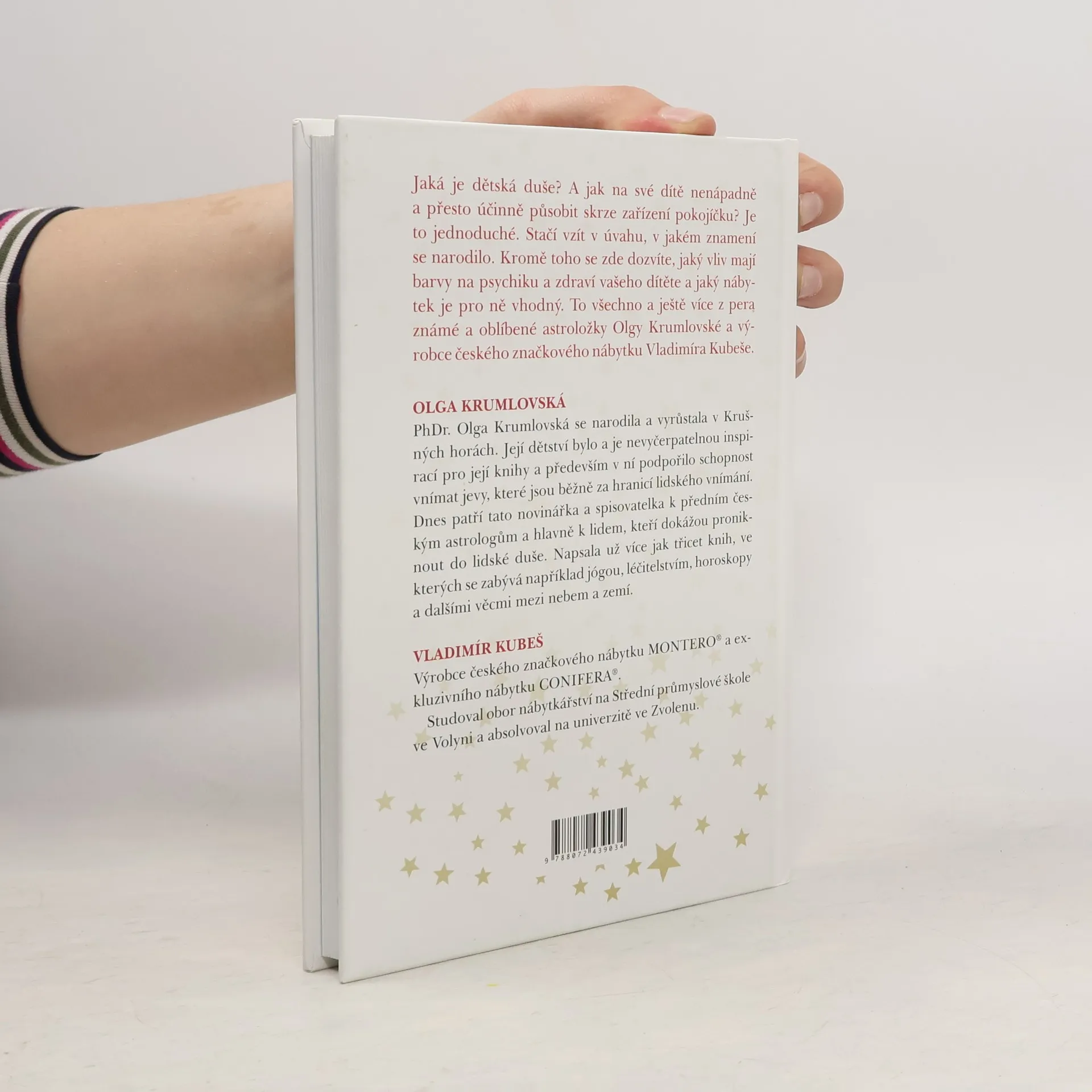 Nevíte, jak své ratolesti zařídit pokojíček? Nebo jak na své dítě nenápadně a přesto účinně působit skrze jeho zařízení? Je to úplně jednoduché, podle toho, v jakém znamení se narodilo. Krom toho se zde dozvíte, jaký vliv mají barvy na psychiku a zdraví dítěte a jaký nábytek je pro něj vhodný. To všechno a ještě víc z pera známé a oblíbené astroložky Olgy Krumlovské a výrobce českého značkového nábytku Vladimíra Kubeše.