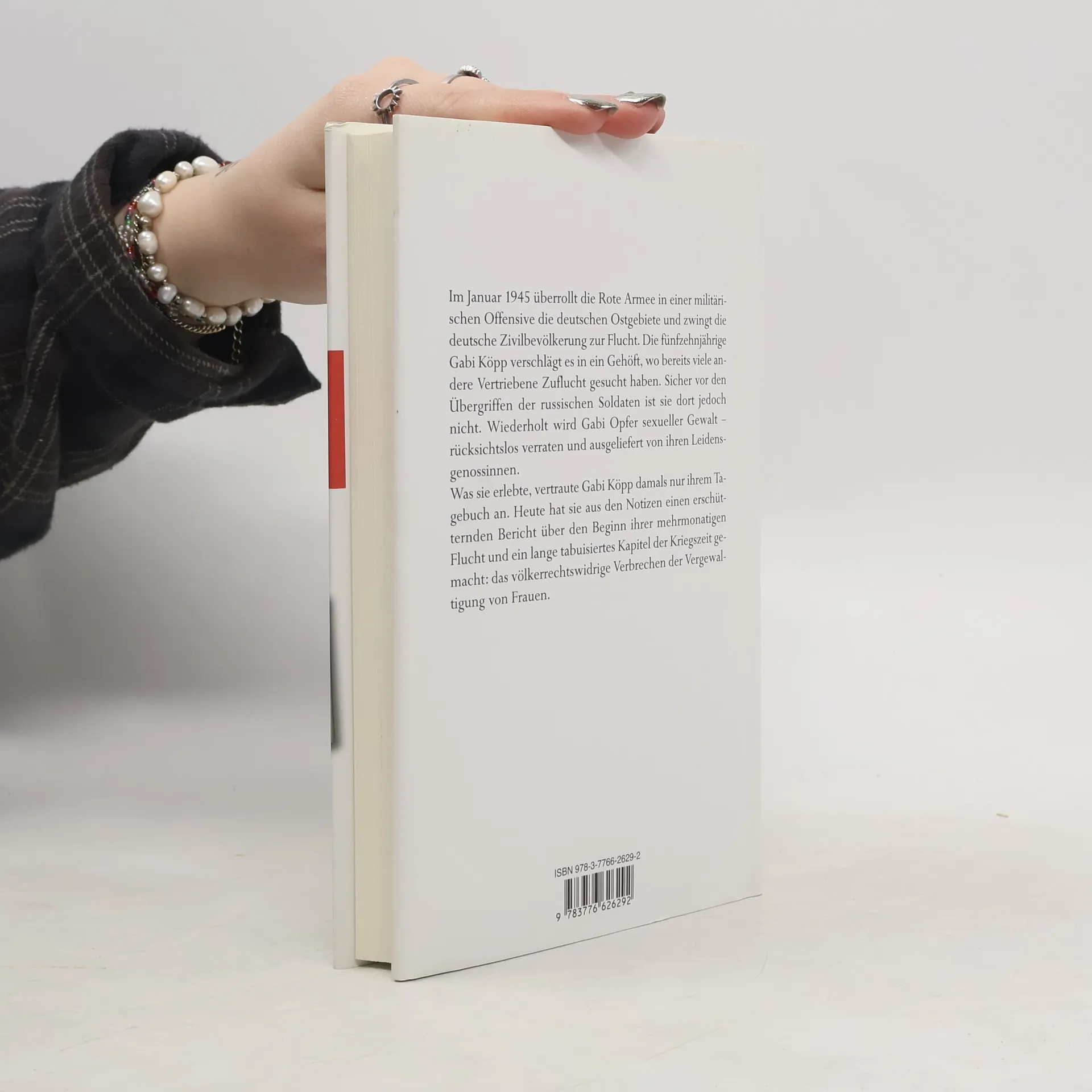 Im Januar 1945 überrollt die Rote Armee in einer militärischen Offensive die deutschen Ostgebiete und zwingt die deutsche Zivilbevölkerung zur Flucht. Die fünfzehnjährige Gabi Köpp verschlägt es in ein Gehöft, wo bereits viele andere Vertriebe Zuflucht gesucht haben. Sicher vor den Übergriffen der russischen Soldaten ist sie dort jedoch nicht. Wiederholt wird Gabi Opfer sexueller Gewalt - rücksichtslos verraten und ausgeliefert von ihren Leidensgenossinnen. Was sie erlebte, vertraute Gabi Köpp damals nur ihrem Tagebuch an. Heute hat sie aus den Notizen einen erschütternden Bericht über den Beginn ihrer mehrmonatigen Flucht und ein lange tabuisiertes Kapitel der Kriegszeit gemacht: das völkerrechtswidrige Verbrechen der Vergewaltigung von Frauen. Mit einem wissenschaftlichen Nachwort der Historikern Dr. Birgit Beck-Heppner, ausgewiesene Expertin zum Thema „Massenvergewaltigung“ und „Völkerrecht“.