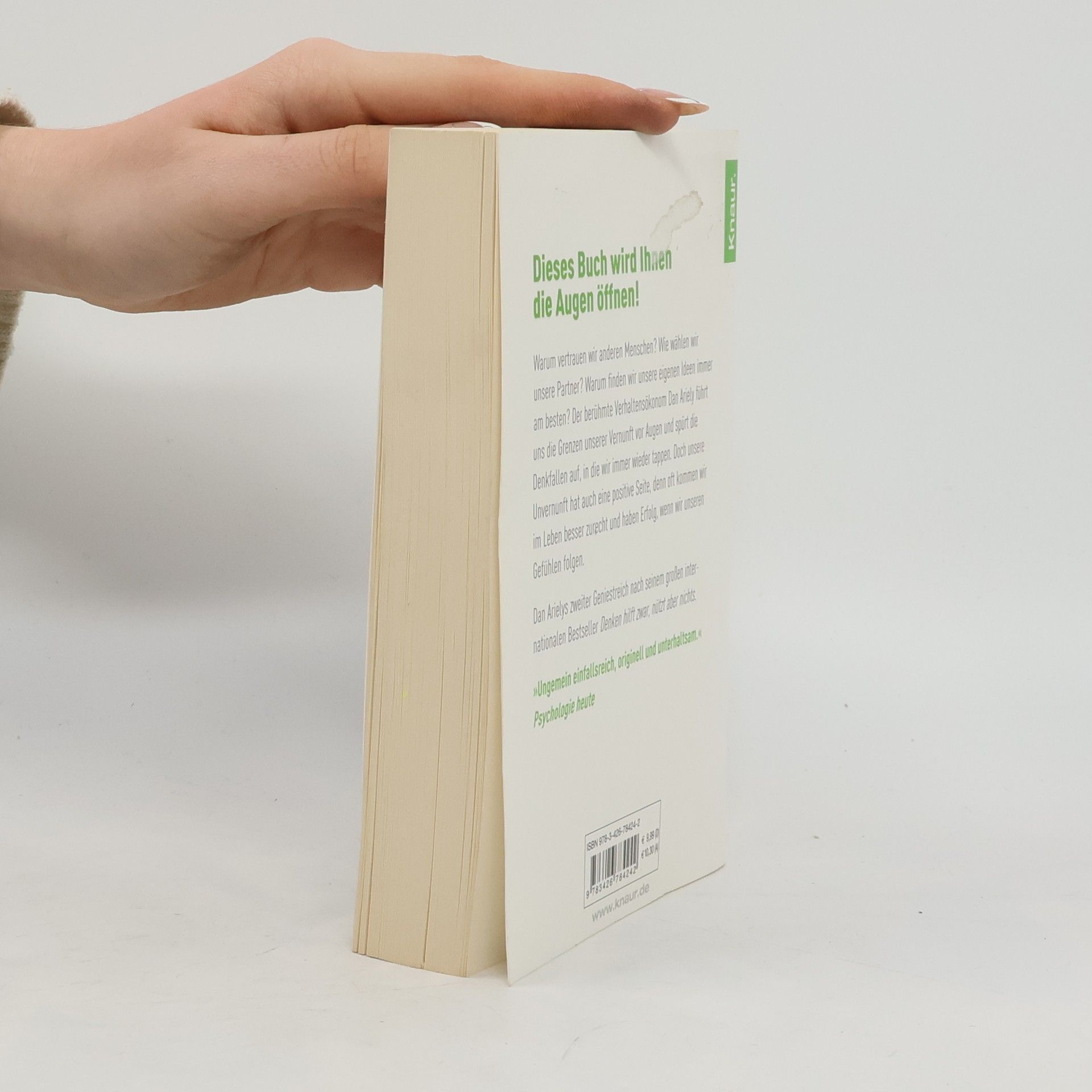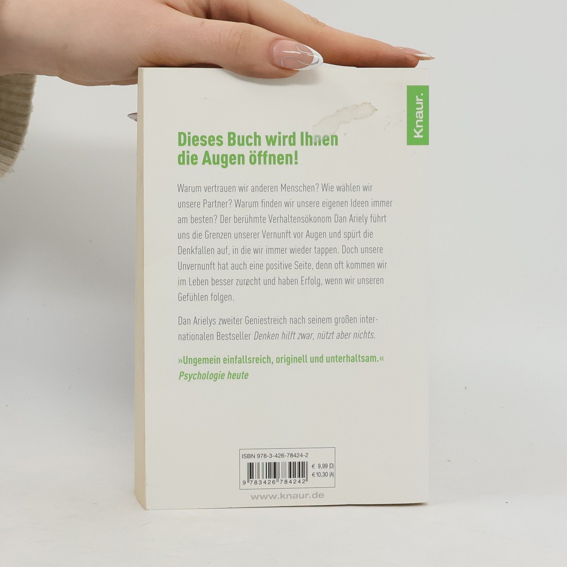 Warum halten wir die eigenen Ideen immer für die besten? Weshalb wirken sich hohe Boni nachteilig auf die Arbeitsleistung aus? Wieso folgen wir bei der Partnersuche nicht unserem Schönheitsideal? Und warum lassen sich Rachegefühle so schwer bezähmen? In seinem neuen Bestseller untersucht Dan Ariely unser Verhalten in der Arbeitswelt und in zwischenmenschlichen Beziehungen. Sein ernüchternder Befund: Wir meinen zwar, Alltagssituationen vernünftig einschätzen zu können und Herr unserer Entscheidungen zu sein, doch in Wirklichkeit lassen wir uns oft von unseren Instinkten und Gefühlen leiten. Wir erliegen Trugschlüssen und begehen unwissentlich immer wieder Fehler – zum eigenen Nachteil. Ariely hilft uns, die wahren Triebfedern unseres Handelns zu erkennen. Und er hat auch eine gute Botschaft: Tatsächlich geht es uns meist viel besser, wenn wir den Verstand links liegenlassen.