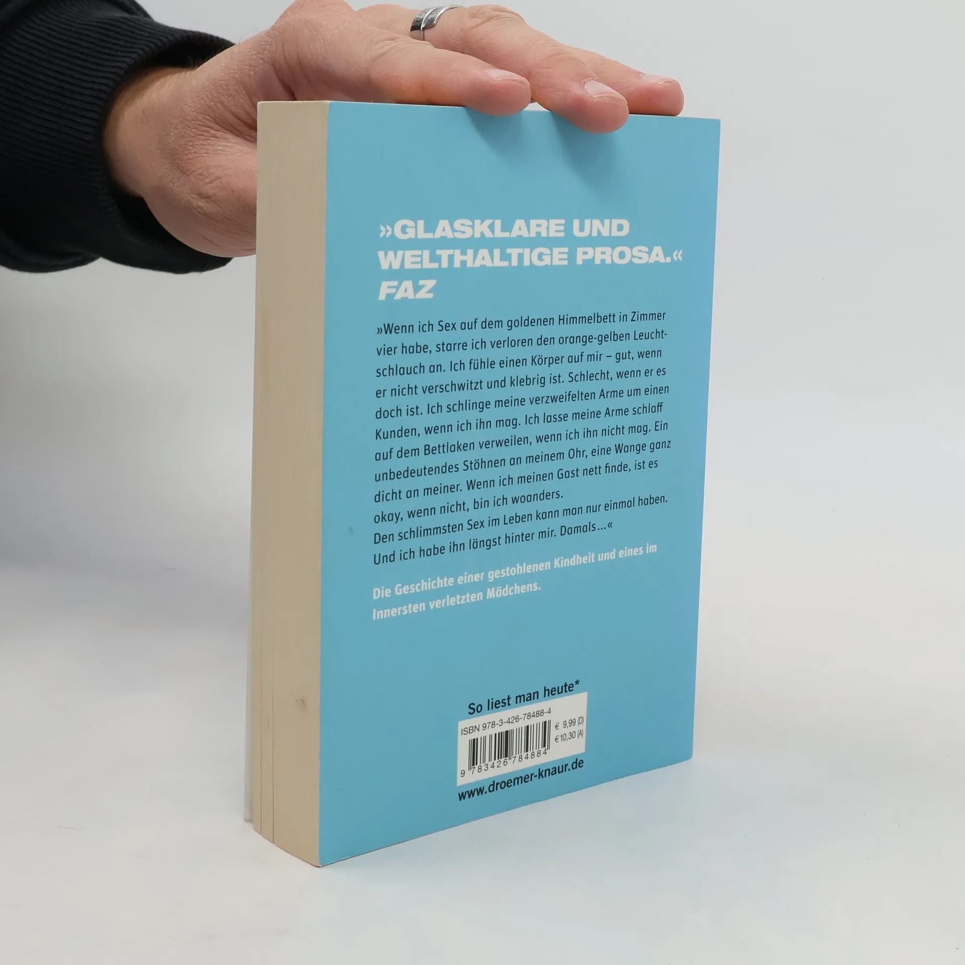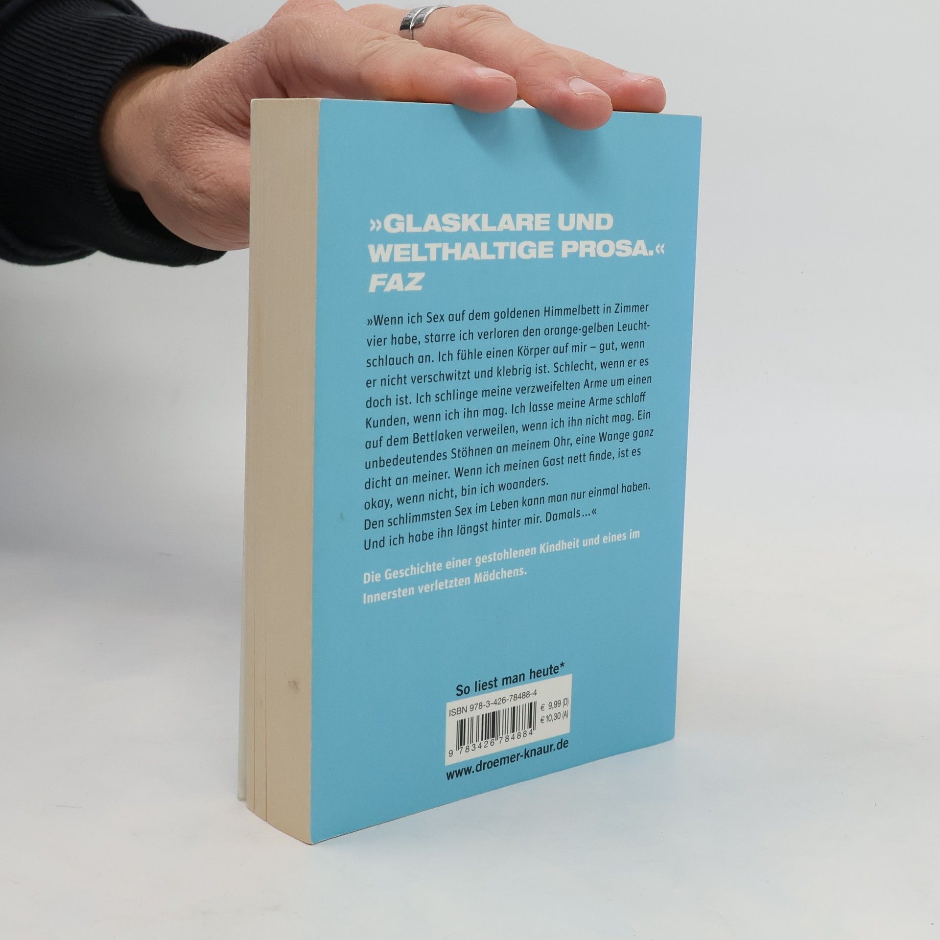 Lilly Lindner ist sechs, als der Nachbar beginnt, sie regelmäßig zu vergewaltigen. Er droht ihr mit dem Schlimmsten, falls sie etwas ihren Eltern erzählen sollte. Und so schweigt das kleine Mädchen. Schließlich zieht der Mann weg – doch Lillys Leben ist längst aus dem Lot. Mit 13 Jahren fängt sie an zu hungern – damit von ihrem geschundenen Körper möglichst wenig übrig bleibt. Doch die Schande macht sie damit nicht ungeschehen. Und so beschließt Lilly als junge Frau, ihren Körper, der ihr schon lange nicht mehr gehört, in einem Edel- Bordell zu verkaufen. Und ausgerechnet hier beginnt sie, ihre ungeheuerliche Geschichte aufzuschreiben – und verfasst ein beeindruckendes, provozierendes Buch von großer Sprachgewalt.
