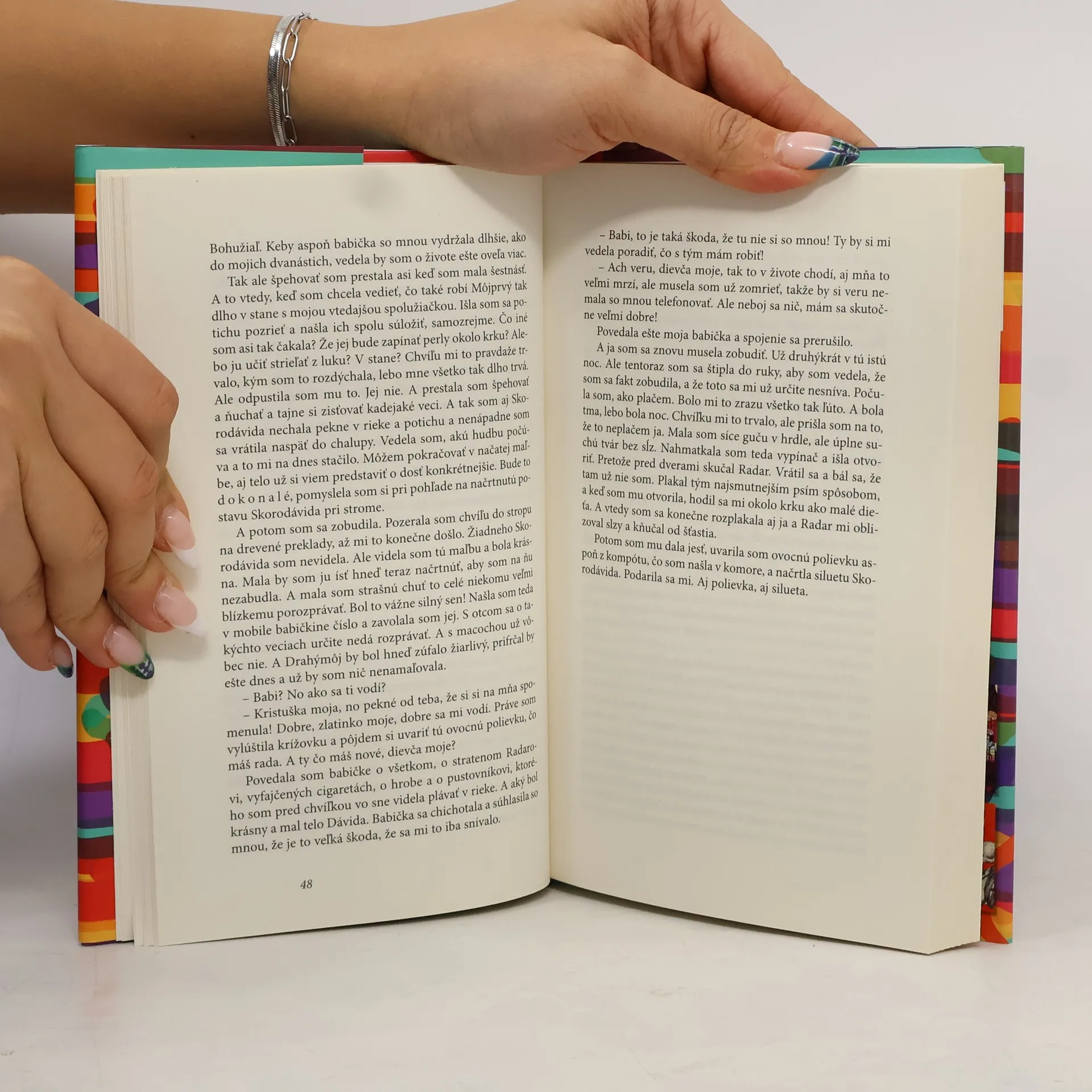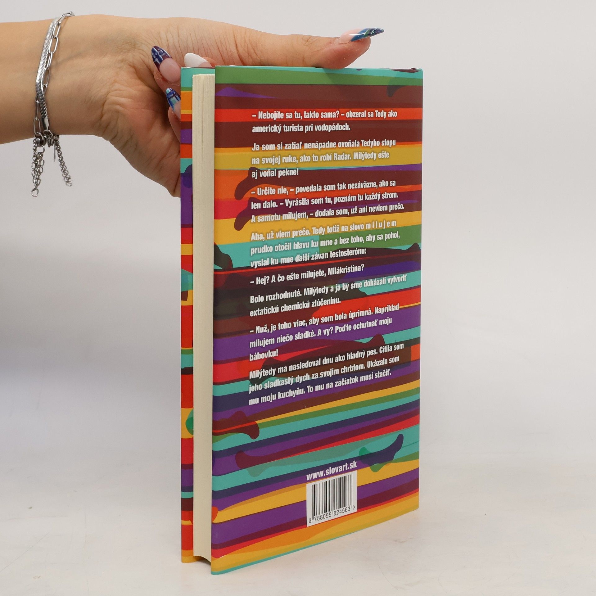 Krista bude mať tridsaťtri a má pocit, že pestré sú v jej živote už len pančušky. Tie nosí vážne farebné. Možno je to tým, že je výtvarníčka. A možno len cíti, že potrebuje zažiť niečo, čo ju naučí milovať svojho manžela rovnako nekonečne, ako milovala svojho Prvého. Pre spomínanú lásku sa dokáže vrhnúť do čohokoľvek a nezastaví ju ani čerstvý hrob, čo nájde v lese, ani cudzinec, ktorého identita bude pre ňu viac než šokujúca. Tvrdohlavo sa inšpiruje nebezpečnou skutočnosťou, maľuje v sladkastom pachu krvi a nevie, či prežije tento thriller prešpikovaný romantickým a sexuálnym dusnom.