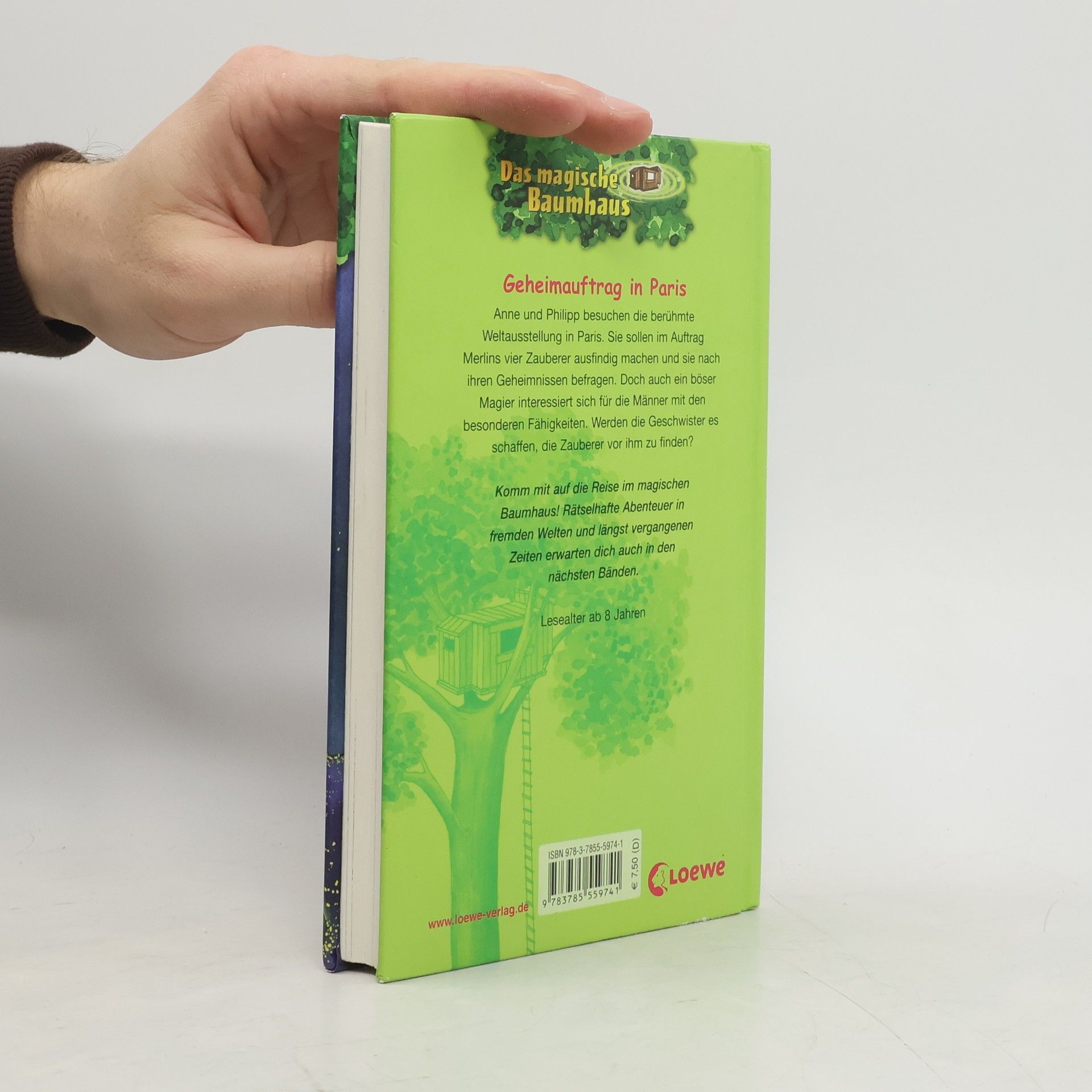 Das Buch ist bei deiner Buchhandlung vor Ort und bei vielen Online-Buchshops erhältlich! + Bücher, die Kinder gerne lesen wollen + Beliebte Themen: Abenteuer, Tiere und fremde Länder + Hochwertiges Hardcover + Mit vielen Illustrationen + Bereits über 10 Millionen verkaufte Bücher der Baumhaus-Reihe + Ausgewogenes Text-Bild-Verhältnis + Große Schrift + Kurze Kapitel + Anne und Philipp besuchen die berühmte Weltausstellung in Paris. Sie sollen im Auftrag Merlins vier Zauberer suchen und sie nach ihren Geheimnissen befragen. Doch auch ein böser Magier interessiert sich für die Männer mit den besonderen Fähigkeiten. Werden die Geschwister es schaffen, die Zauberer vor ihm zu finden? Komm mit auf die Reise im magischen Baumhaus! Rätselhafte Abenteuer in fremden Welten und längst vergangenen Zeiten erwarten dich auch in den nächsten Bänden. Die beliebte Kinderbuch-Reihe von Bestsellerautorin Mary Pope Osborne! Die Geschwister Anne und Philipp reisen mit dem magischen Baumhaus durch die Zeit. Sie erleben spannende Abenteuer, entdecken ferne Länder und lernen viele berühmte Persönlichkeiten kennen.