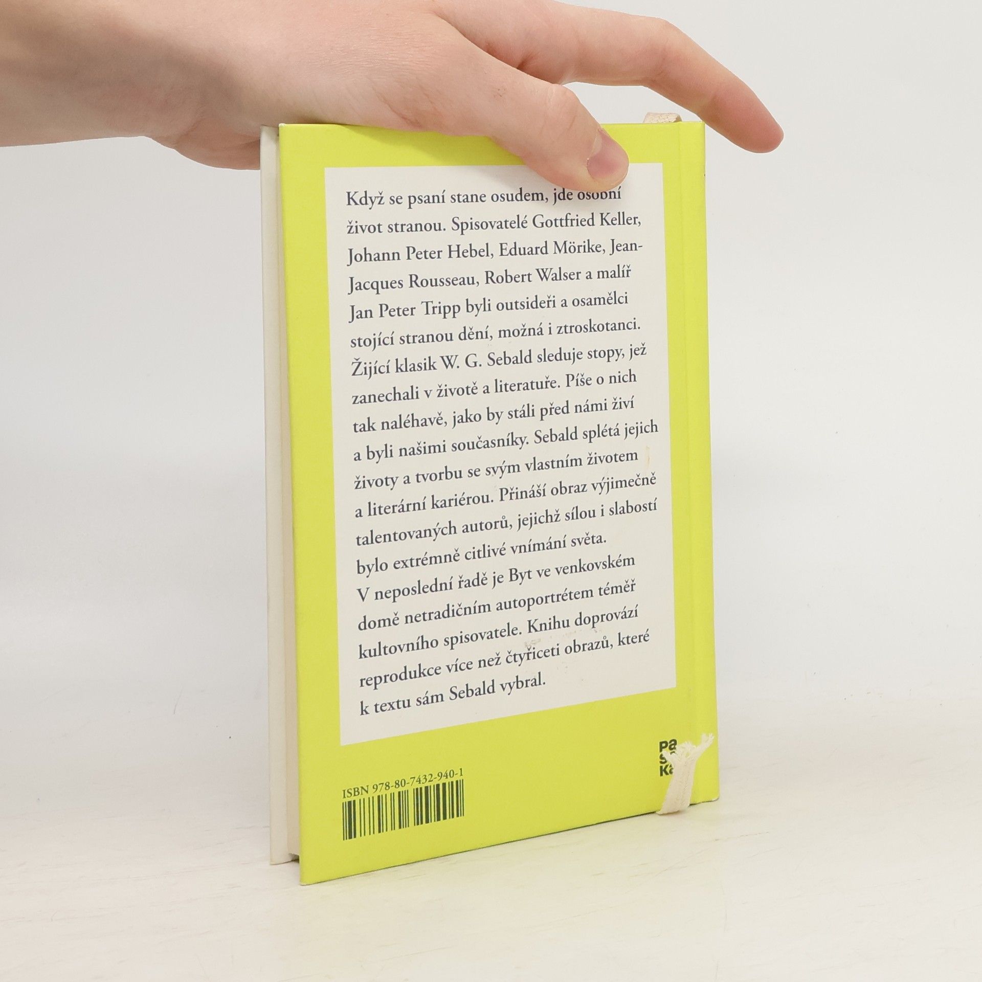 Když se psaní stane osudem, jde osobní život stranou. Spisovatelé Gottfried Keller, Johann Peter Hebel, Eduard Mörike, Jean-Jacques Rousseau, Robert Walser a malíř Jan Peter Tripp byli outsideři a osamělci stojící stranou dění, možná i ztroskotanci. Žijící klasik W. G. Sebald sleduje stopy, jež zanechali v životě a literatuře. Píše o nich tak naléhavě, jako by stáli před námi živí a byli našimi současníky. Sebald splétá jejích osudy a tvorbu se svým vlastním životem a bohatou kariérou. Přináší obraz výjimečně talentovaných autorů, jejichž prokletím byla křehká povaha. V neposlední řadě je Byt ve venkovském domě netradičním autoportrétem téměř kultovního spisovatele. Knihu doprovází reprodukce více než čtyřiceti obrazů, které k textu sám Sebald vybral.