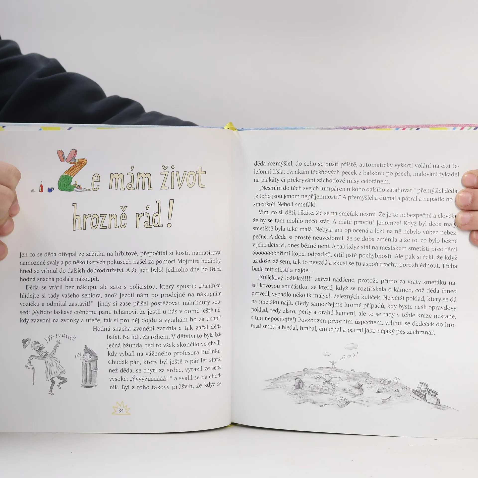 Byl jednou jeden docela obyčejný dědeček, který si poklidně žil ve své chaloupce, pil turka s rumem, čural na hnůj a nic mu nescházelo. Až do chvíle, kdy ho hodná snacha přestěhovala, prý pro jeho dobro, z venkova k nim do městského paneláku. V tom okamžiku se z něj stal dědeček neobyčejný, který celé městečko obrátil vzhůru nohama. V té panelákové šedi se totiž cítil tak nějak… nevyřáděný. A tak si vzpomněl na své dětství a začal dělat všechno to, co tak rád dělával jako malý kluk – sáňkovat na aktovce, hrabat se na smetišti, pouštět vánoční kapry zpátky do řeky, chodit v noci na hřbitov a podobně. Akorát že každá jeho akce nabrala trochu nečekaný spád…