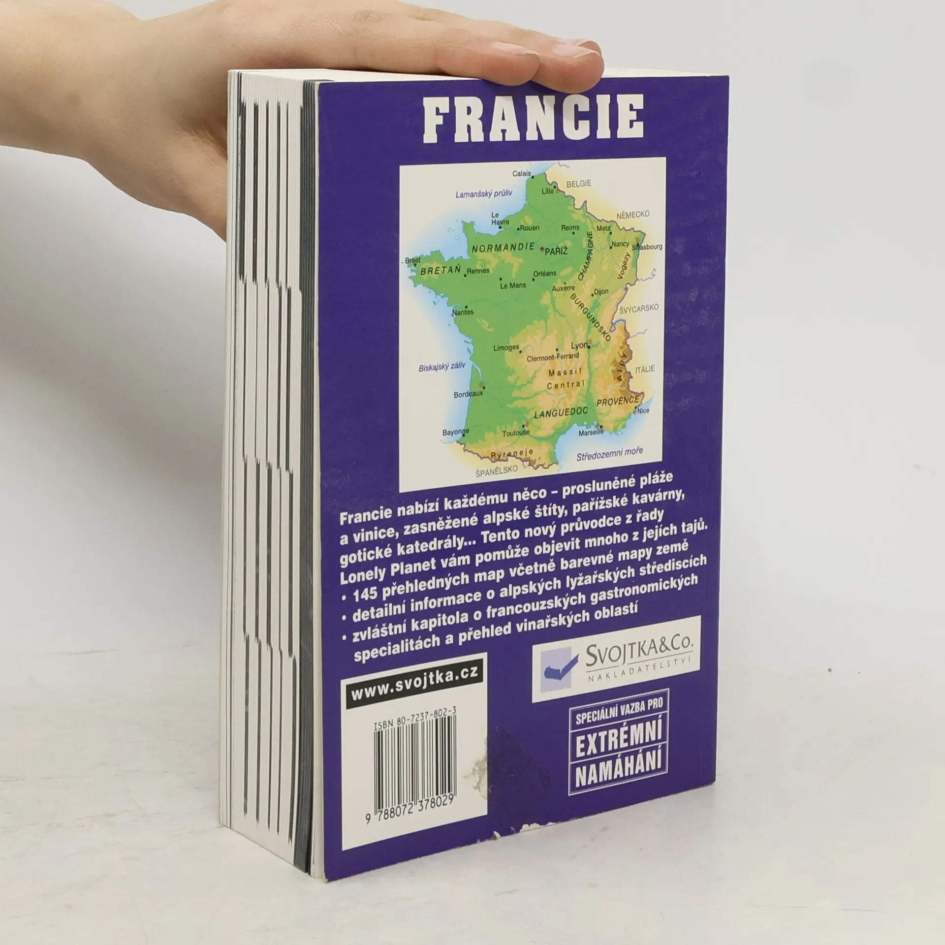 Francie nabízí každému něco – prosluněné pláže a vinice, zasněžené alpské štíty, pařížské kavárny, gotické katedrály…. Tento nový průvodce z řady Lonely Planet vám pomůže objevit mnoho z jejích tajů. - 145 přehledných map včetně barevné mapy země - detailní informace o alpských lyžařských střediscích - zvláštní kapilota o francouzských gastronomických specialitách a přehled vinařských oblastí 1100 str. Lonely Planet je světově proslulá edice průvodců. Patří mezi nejlepší a nejoblíbenější pro svoji kompletnost, přehlednost a aktuálnost. Již po tři desetiletí se těší obrovskému zájmu všech, kteří nechtějí sedět doma, všech, které lákají dálky a nekonečný obzor a pro které je cestování tou správnou životní filozofií. Průvodci této cestovatelské bible pokrývají téměř celý svět. Jsou psány profesionálními cestovateli-specialisty pro jednotlivé oblasti a každé dva až tři roky jsou pravidelně aktualizovány. Jsou plné praktických a užitečných informací, kvalitních map a plánků, objektivních doporučení. To vše z nich dělá nenahraditelného pomocníka na cesty, který sníží cestovní náklady na minimum a pomůže překonat přirozený ostych z jazykové bariéry. Všem českým cestovatelům jsou nyní dostupné některé tituly v rodném jazyce. Formát jednotlivých průvodců: 12,8 x 18,4 cm Kvalitní brožovaná vazba vhodná pro extrémní namáhání