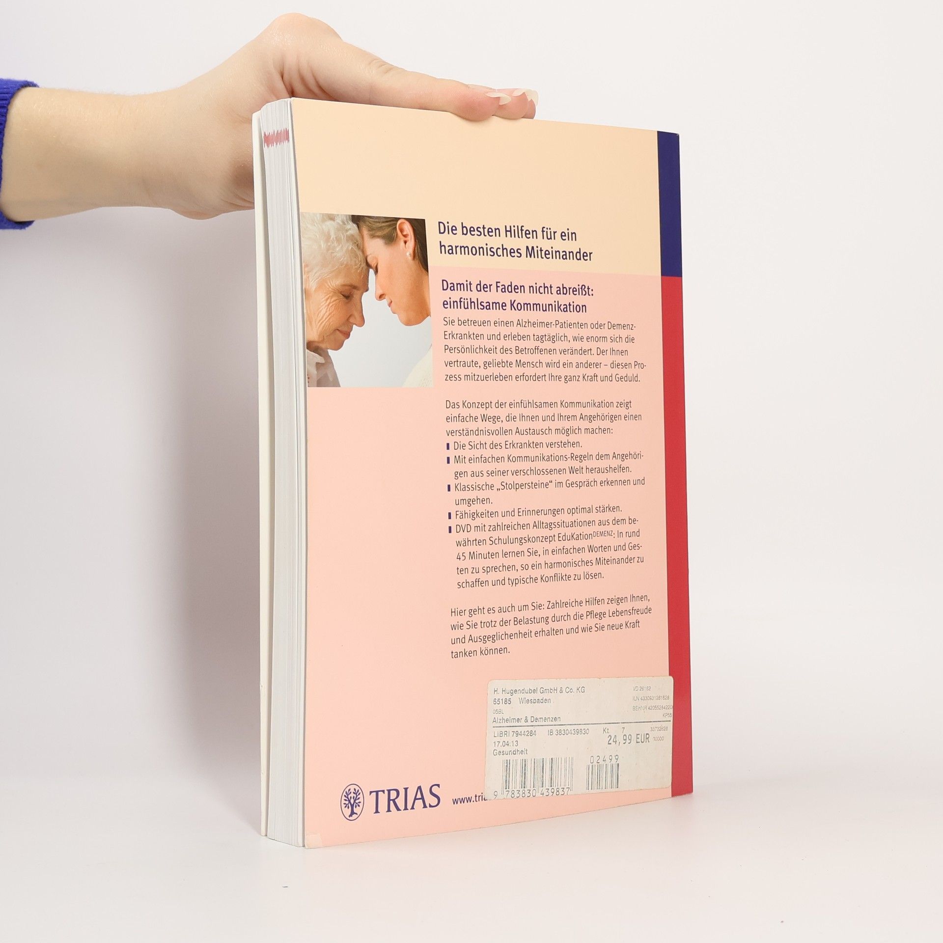 Die besten Hilfen für ein harmonisches Miteinander Damit der Faden nicht abreißt: einfühlsame Kommunikation Sie betreuen einen Alzheimer-Patienten oder Demenz-Erkrankten und erleben tagtäglich, wie enorm sich die Persönlichkeit des Betroffenen verändert. Der Ihnen vertraute, geliebte Mensch wird ein anderer - diesen Prozess mitzuerleben erfordert Ihre ganz Kraft und Geduld. Das Konzept der einfühlsamen Kommunikation zeigt einfache Wege, die Ihnen und Ihrem Angehörigen einen verständnisvollen Austausch möglich machen: - Die Sicht des Erkrankten verstehen. - Mit einfachen Kommunikations-Regeln dem Angehörigen aus seiner verschlossenen Welt heraushelfen. - Klassische „Stolpersteine“ im Gespräch erkennen und umgehen. - Fähigkeiten und Erinnerungen optimal stärken. Hier geht es auch um Sie: Zahlreiche Hilfen zeigen Ihnen, wie Sie trotz der Belastung durch die Pflege Lebensfreude und Ausgeglichenheit erhalten und wie Sie neue Kraft tanken können.