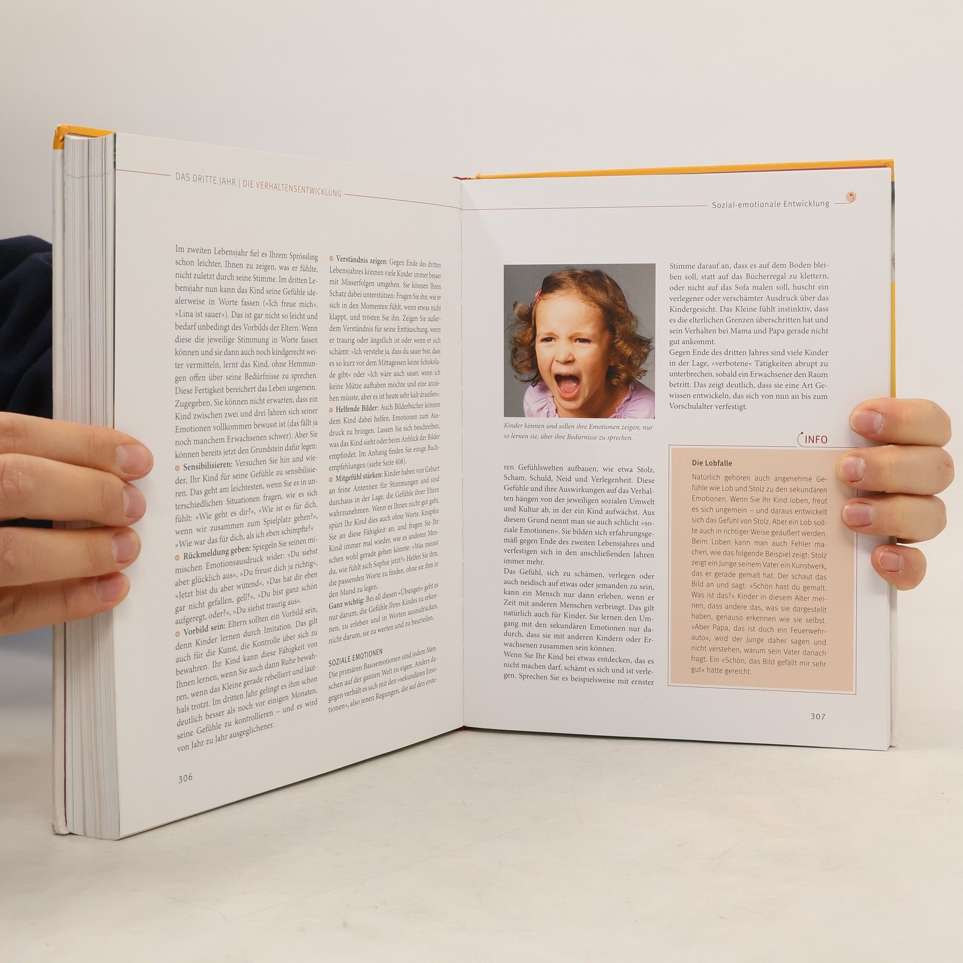 In Riesenschritten entwickelt sich das Baby vom Säugling zum Kleinkind. Für Eltern steht in dieser bewegenden Zeit stets ein Anliegen im Mittelpunkt: Geht es meinem Kleinen gut, entwickelt es sich altersgemäß? Dieses Buch begleitet Eltern bis zum 3. Geburtstag des Kindes. Er geht auf alle Entwicklungen in dieser Zeitspanne ein, unter anderem hinsichtlich Körper und Psyche, Sprache, Schlafen, sozialen Kontakten, Verhalten und Erziehung. Eltern erhalten auf alle wichtigen Fragen im Alltag praktische Antworten. Der Ratgeber -Die ersten drei Jahre meines Kindes- erklärt zum Beispiel, wie die motorische oder sprachliche Entwicklung des Babys verläuft und wie Eltern sie spielerisch fördern können. Oder wie ihr Kind es leicht schafft, von selbst trocken zu werden, ob der Schnuller Fluch oder Segen ist, wie man ein Kind in der Trotzphase erzieherisch am besten begleitet oder wie man ein Dreijähriges optimal auf den Kindergarten vorbereiten kann.
