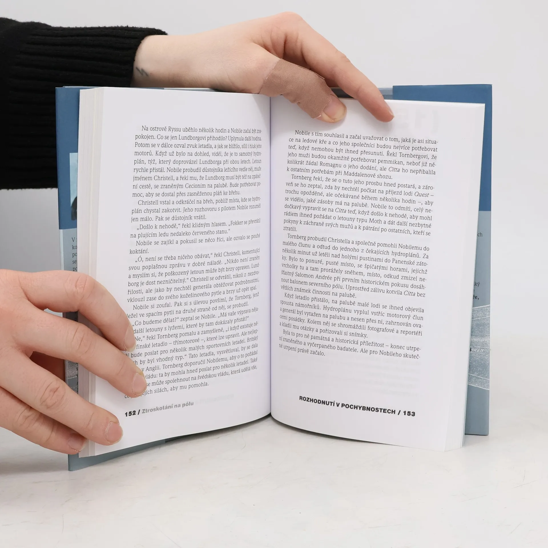 V roce 1928 se rozhodl letecký konstruktér Umberto Nobile, dva roky po úspěšném přeletu severního pólu, k nové cestě v řiditelné vzducholodi, kde chtěl vysadit výzkumníky a poté je dopravit zpět na základnu. Při zpátečním letu však vzducholoď ztroskotala a ti, kdo pád přežili, uvízli na ledové kře. Jejich zmizení podnítilo dosud nejrozsáhlejší záchranou akci, při níž vedle jiných zahynul i R. Amundsen. Autor líčí téměř dvouměsíční boj trosečníků o přežití, záchranné akce i politické intriky italské vlády.