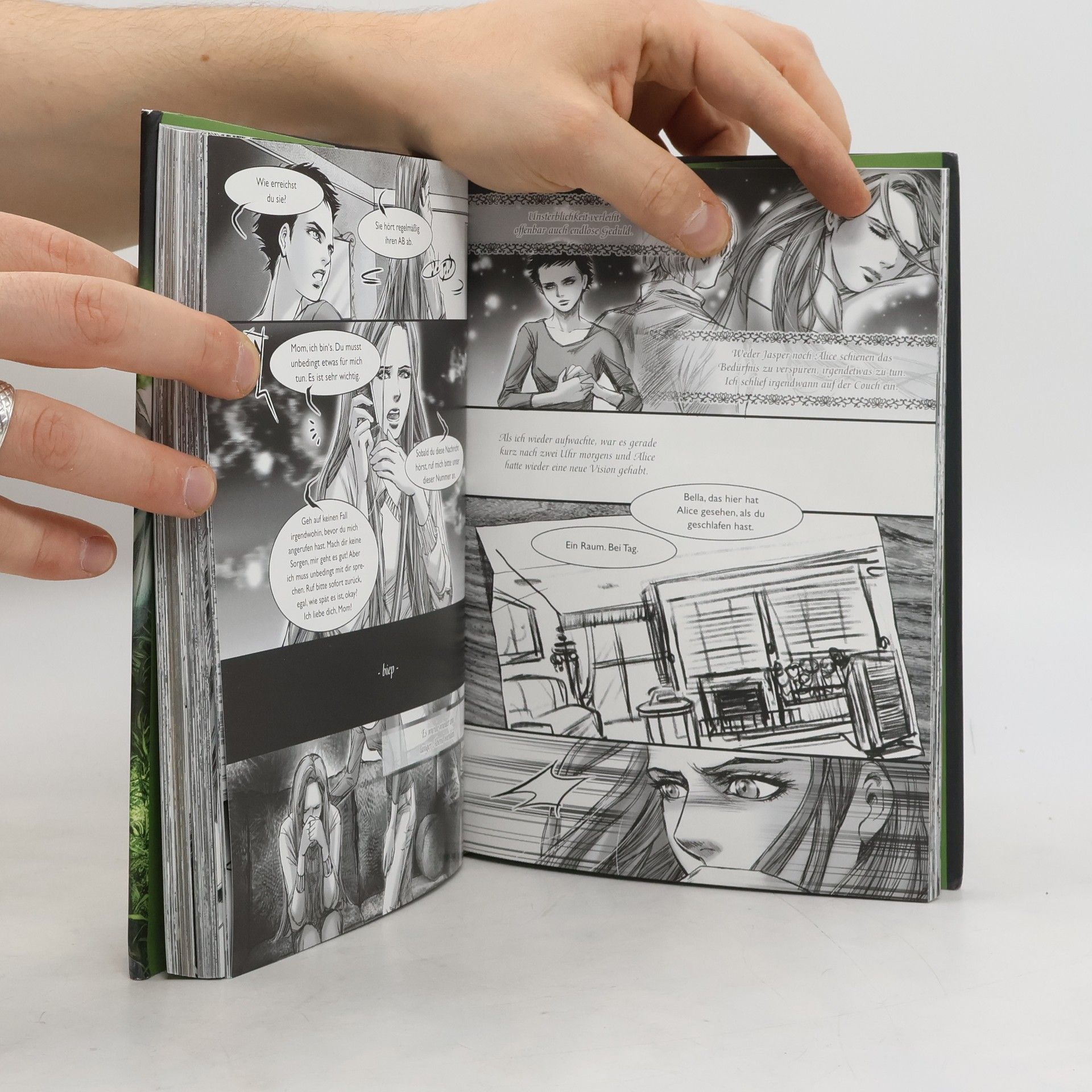 In "Twilight: Biss zum Morgengrauen - der Comic" verwandelte die koreanische Zeichnerin Young Kim Stephenie Meyers Worte in eine packende Comicgeschichte, die in stimmungsvollen Bildern von Bellas und Edwards Leben in Forks erzählt. Mit Romantik oder gar Leidenschaft hätte Bella ihren Umzug nach Forks, einer langweiligen, ständig verregneten Kleinstadt in Washington State, kaum in Verbindung gebracht. Bis sie den geheimnisvollen und attraktiven Edward kennen lernt. Er fasziniert sie, obwohl irgendetwas mit ihm nicht zu stimmen scheint. So gut aussehend und stark wie er kann kein gewöhnlicher Mensch sein. Aber was ist er dann? Die Geschichte einer verbotenen Liebe, einer Liebe gegen alle Vernunft. Die so viele Hindernisse überwinden muss, dass man auf jeder Seite mitfiebert. So romantisch und spannend, dass dem Leser bei diesem wunderschön geschriebenen Buch eine Gänsehaut über den Rücken läuft.