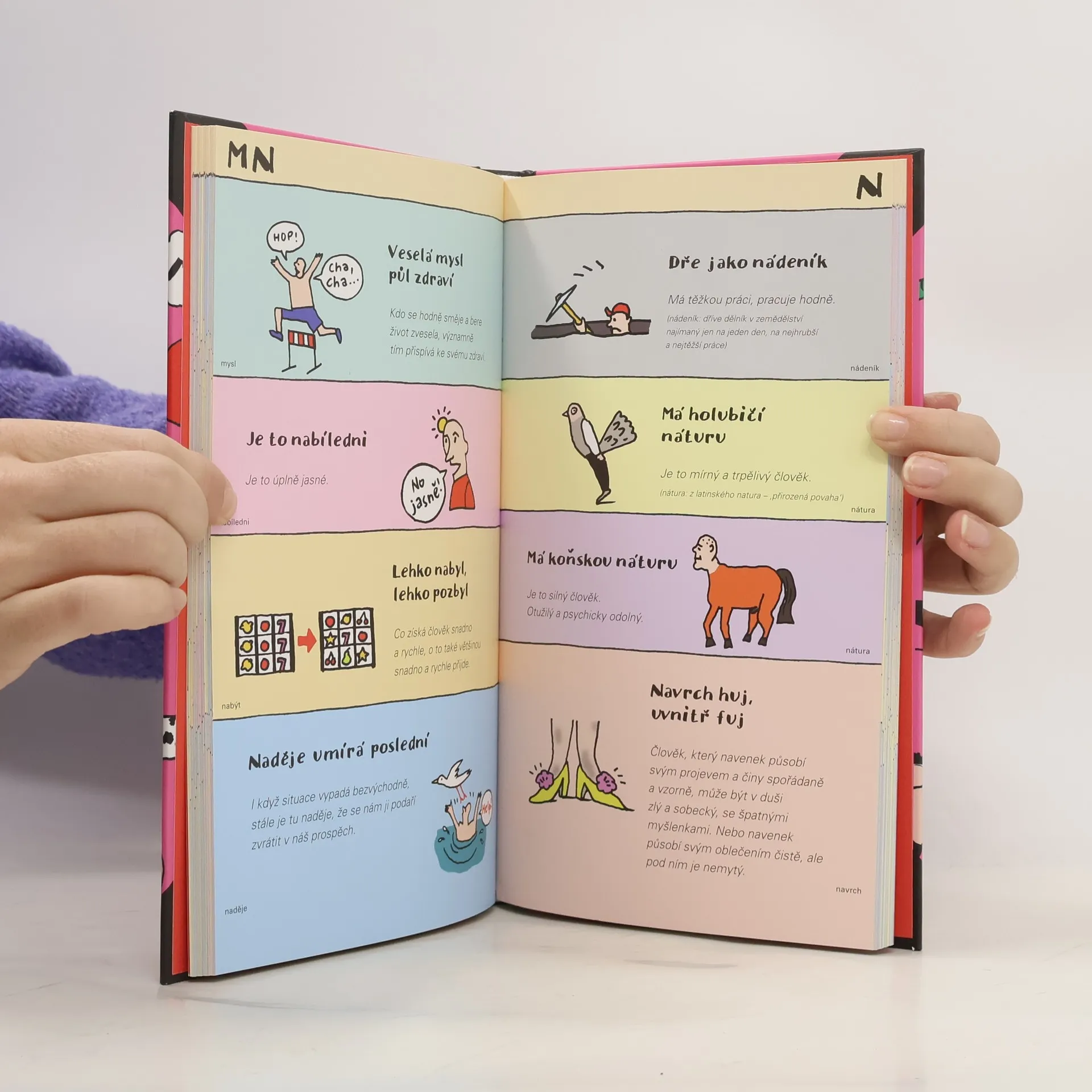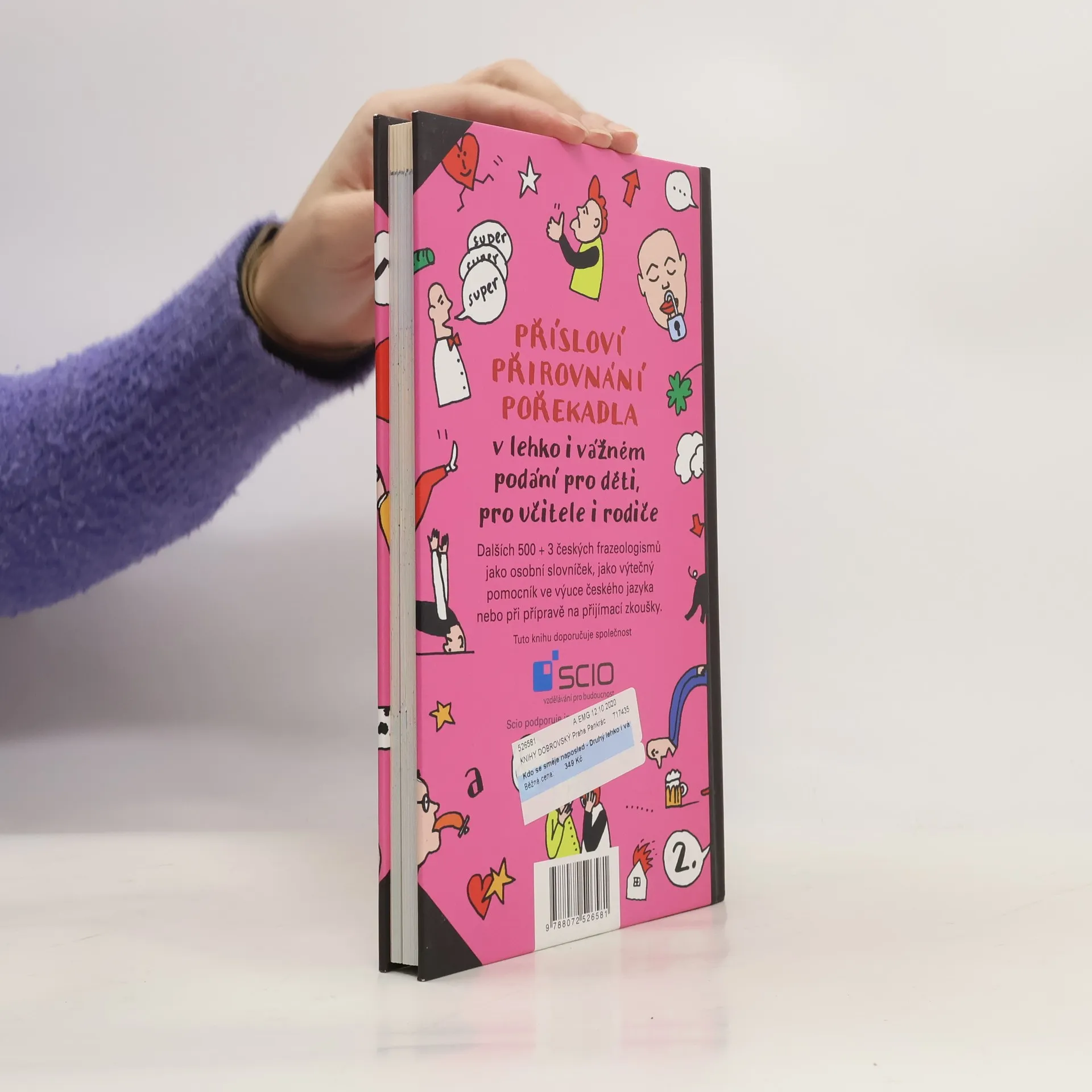 Přísloví, přirovnání a pořekadla v lehko i vážném podání pro děti, učitele i rodiče. Dalších 500 + 3 českých frazeologismů Jako osobní slovníček, jako výtečný pomocník ve výuce českého jazyka nebo při přípravě na přijímací zkoušky. Jednoduché abecední řazení hesel, stručné vysvětlení frazeologického spojení doprovázené humornou popartovou ilustrací. Ověřeno společností Scio. Volně navazuje na Kdo jinému jámu kopá
