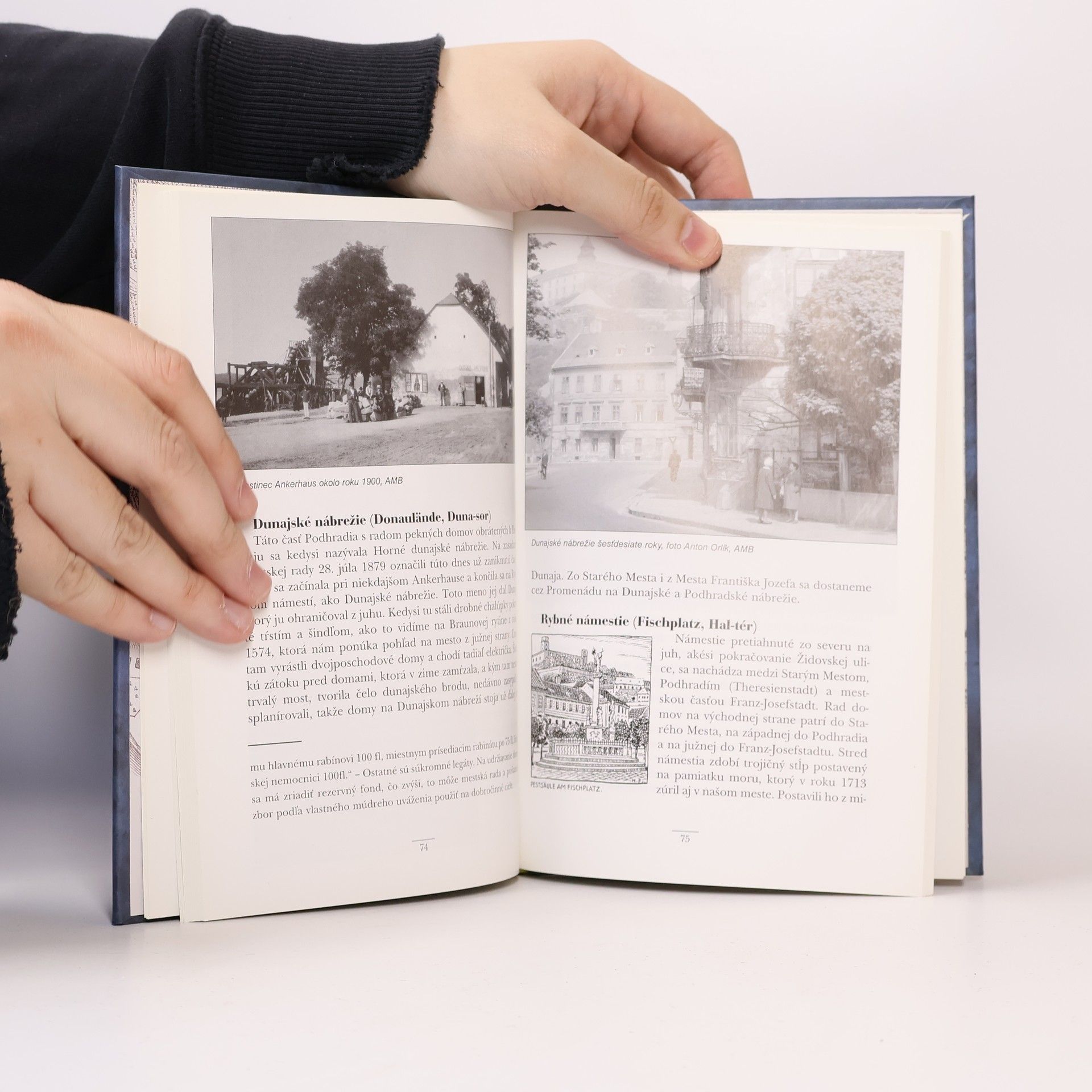 150 unikátnych fotografií, grafík a kresieb z dnes už neexistujúcej časti mesta, ktoré zachycujú jej neopakovateľnú atmosféru. Kniha je prechádzkou uličkami od starého židovského cintorína po nábreží Zuckermandlu a Vydrice, cez rybné námestie so siluetou dómu a synagógy, hore Židovskou a Zámockou ulicou okolo Hradu až po zostup z výšin Hradného vrchu cez spleť malebných uličiek späť na nábrežie.
