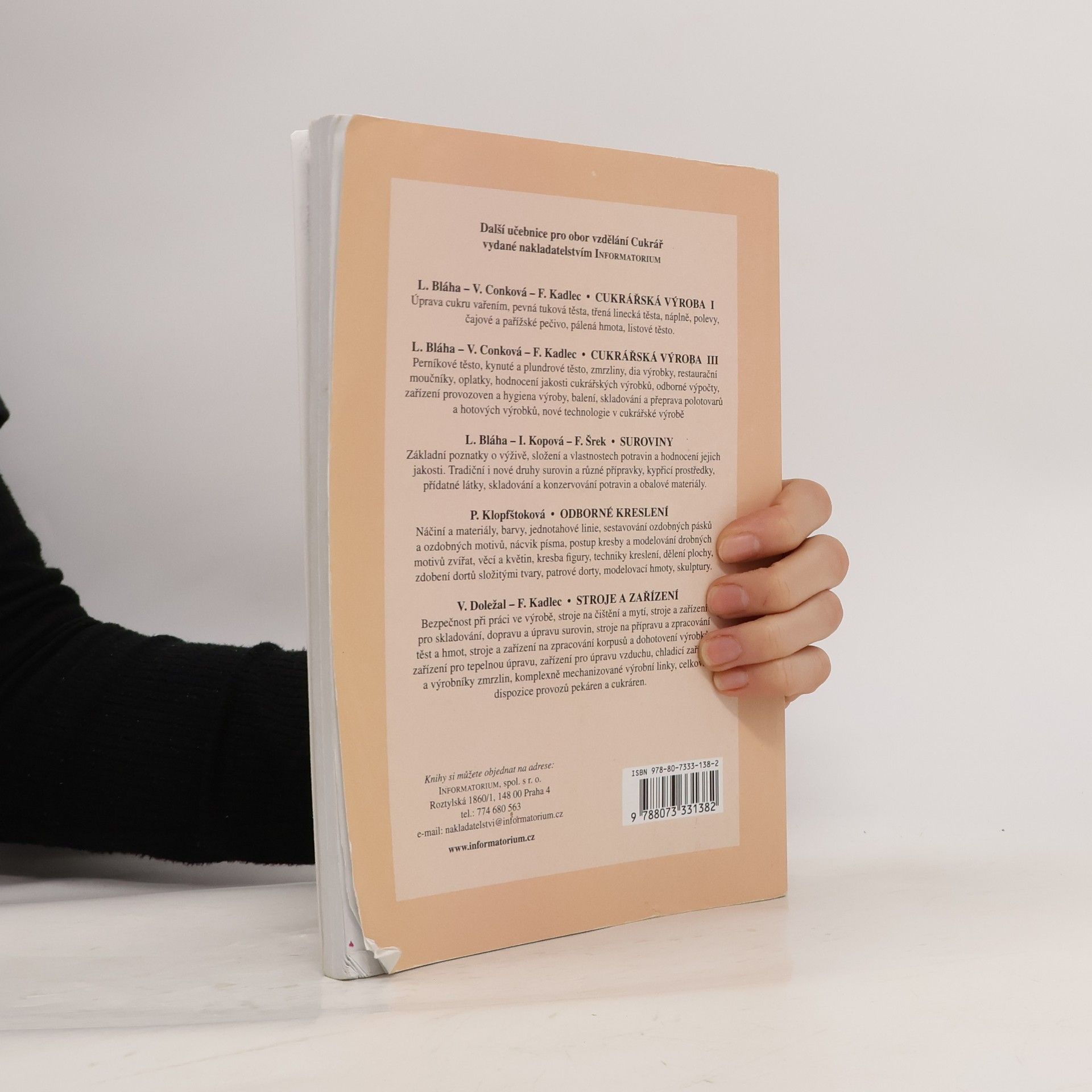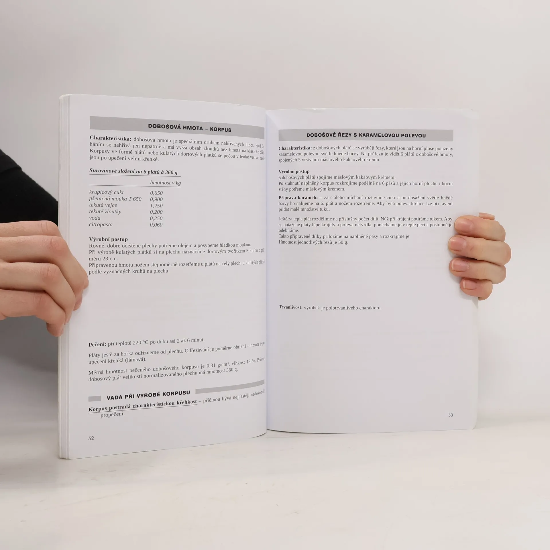 Seznamuje s klasickými technologickými postupy i moderními formami práce a novými výrobními postupy. Objasňuje chemicko-fyzikální děje, které v průběhu výrobního procesu probíhají. Přibližuje jednotlivé fáze výroby, význam nových surovin, jejich vlastnosti a způsob zpracování. Zabývá se vadami výrobků a jejich příčinami, uvádí jak závadám předcházet, popř. jak je odstraňovat. Popisuje výrobu šlehaných, třených a jádrových hmot, čajového a pařížského pečiva, smetanových výrobků a náplní, ozdob a speciálních výrobků.