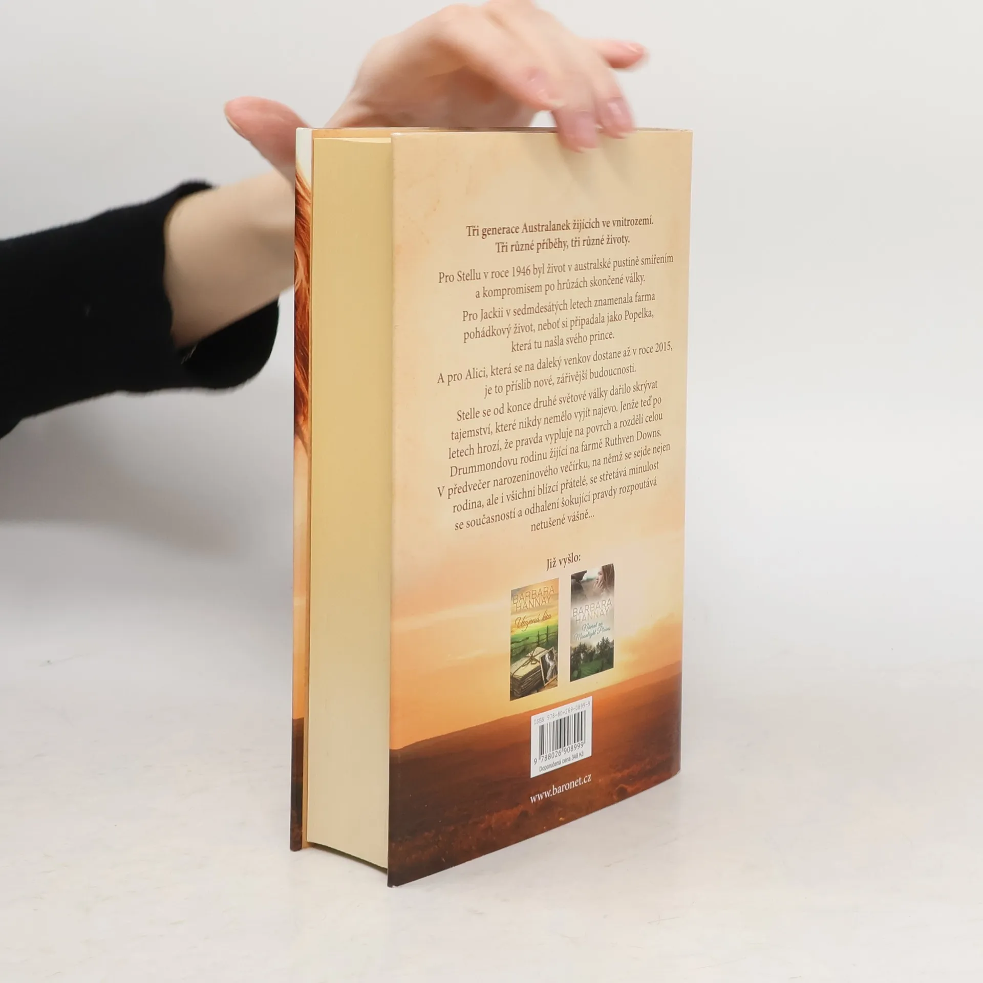 Tři generace Australanek žijících ve vnitrozemí, tři různé příběhy, tři různé životy. Pro Stellu byl život ve vnitrozemí v roce 1946 smířením a kompromisem po hrůzách skončené války. Pro Jackii znamenala farma v sedmdesátých letech pohádkový život, neboť si připadala jako Popelka, která tu našla svého prince. A pro Alici, která se do vnitrozemí dostane až v roce 2015, je to příslib nové zářivější budoucnosti. Stelle se od konce druhé světové války dařilo skrývat tajemství, které nikdy nemělo vyjít najevo. Jenže teď po letech hrozí, že pravda vyjde najevo a rozdělí celou Drummondovu rodinu žijící na farmě Ruthven Downs. V předvečer narozeninového večírku, na němž se sejde nejen rodina, ale i všichni blízcí přátelé, se střetává minulost se současností a odhalení šokující pravdy rozpoutá netušené vášně. Tato rozsáhlá sága je plná emocí, víry a naděje tří silných žen žijících na odlehlé dobytkářské farmě daleko na severu Queenslandu… žen, které prožívají všechny slasti a strasti lásky a učí se, kdy své milované podpořit a kdy je raději nechat jít…