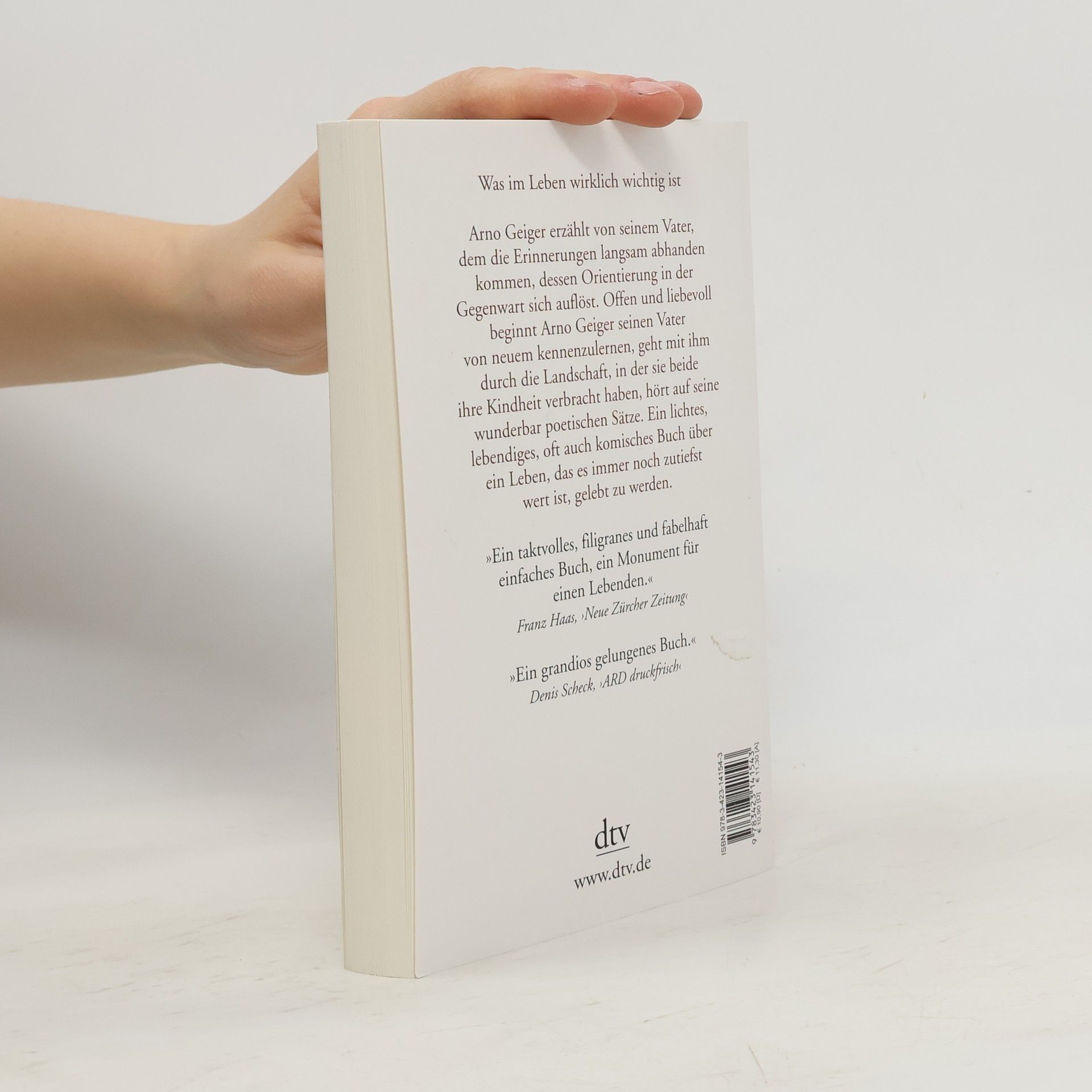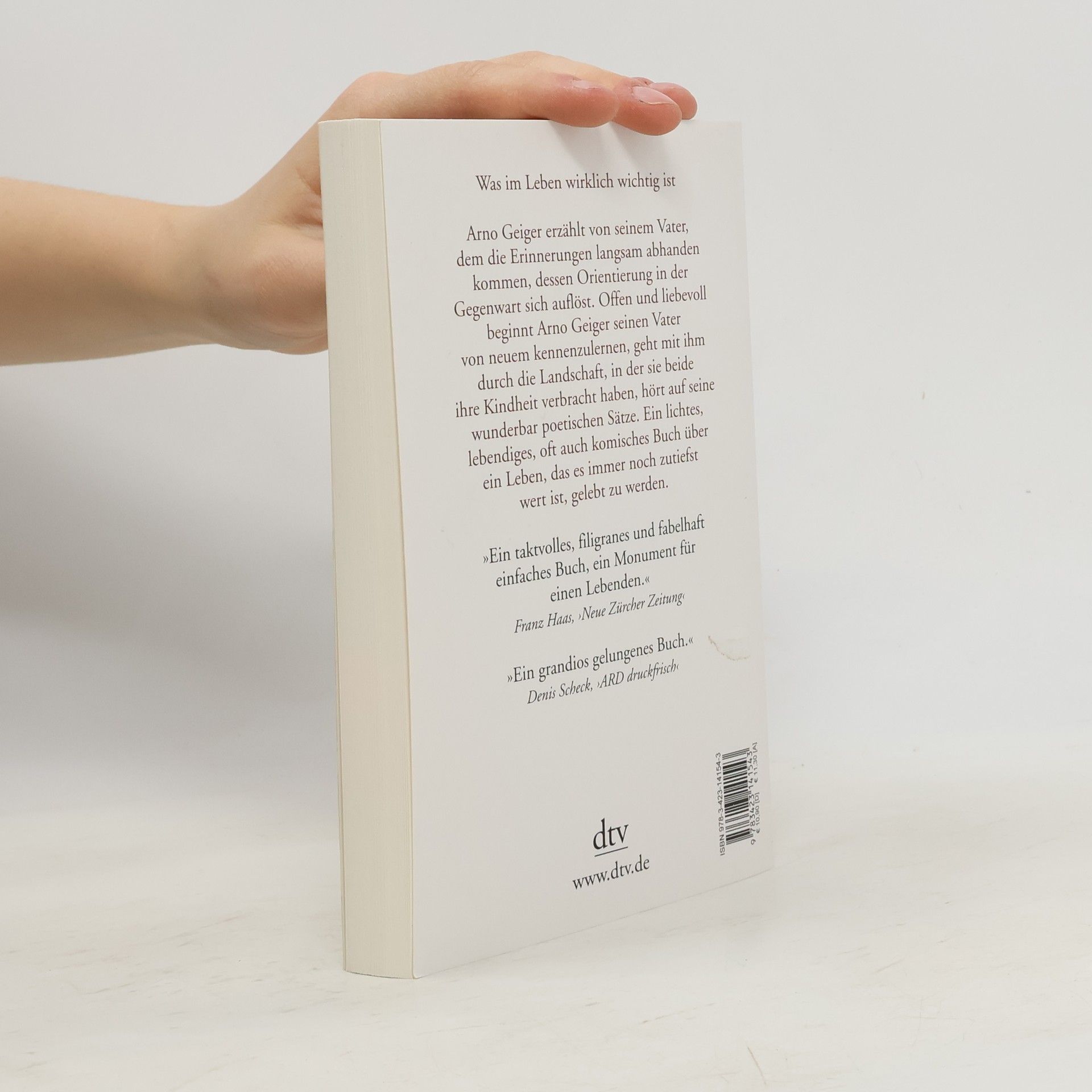Was im Leben wirklich wichtig ist Arno Geiger hat ein äußerst berührendes Buch über seinen Vater geschrieben, der trotz seiner Alzheimerkrankheit mit Vitalität und Klugheit beeindruckt. Im Alltag ist der Vater oft hellwach, aber seine Vergangenheit, sein Haus und seine Kinder hat er vergessen. Arno Geiger erzählt, wie er nochmals Freundschaft mit seinem Vater schließt und ihn viele Jahre begleitet. Er entdeckt, dass es auch mit der Krankheit bei seinem Vater noch alles gibt: Charme, Witz, Selbstbewusstsein und Würde. Ein lebendiges, oft komisches Buch, das von einem Leben erzählt, das es immer noch zutiefst wert ist, gelebt zu werden.