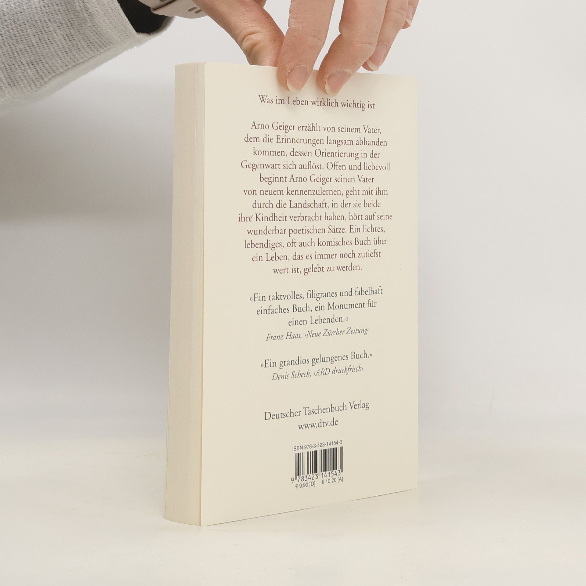 Was im Leben wirklich wichtig ist Arno Geiger hat ein äußerst berührendes Buch über seinen Vater geschrieben, der trotz seiner Alzheimerkrankheit mit Vitalität und Klugheit beeindruckt. Im Alltag ist der Vater oft hellwach, aber seine Vergangenheit, sein Haus und seine Kinder hat er vergessen. Arno Geiger erzählt, wie er nochmals Freundschaft mit seinem Vater schließt und ihn viele Jahre begleitet. Er entdeckt, dass es auch mit der Krankheit bei seinem Vater noch alles gibt: Charme, Witz, Selbstbewusstsein und Würde. Ein lebendiges, oft komisches Buch, das von einem Leben erzählt, das es immer noch zutiefst wert ist, gelebt zu werden.