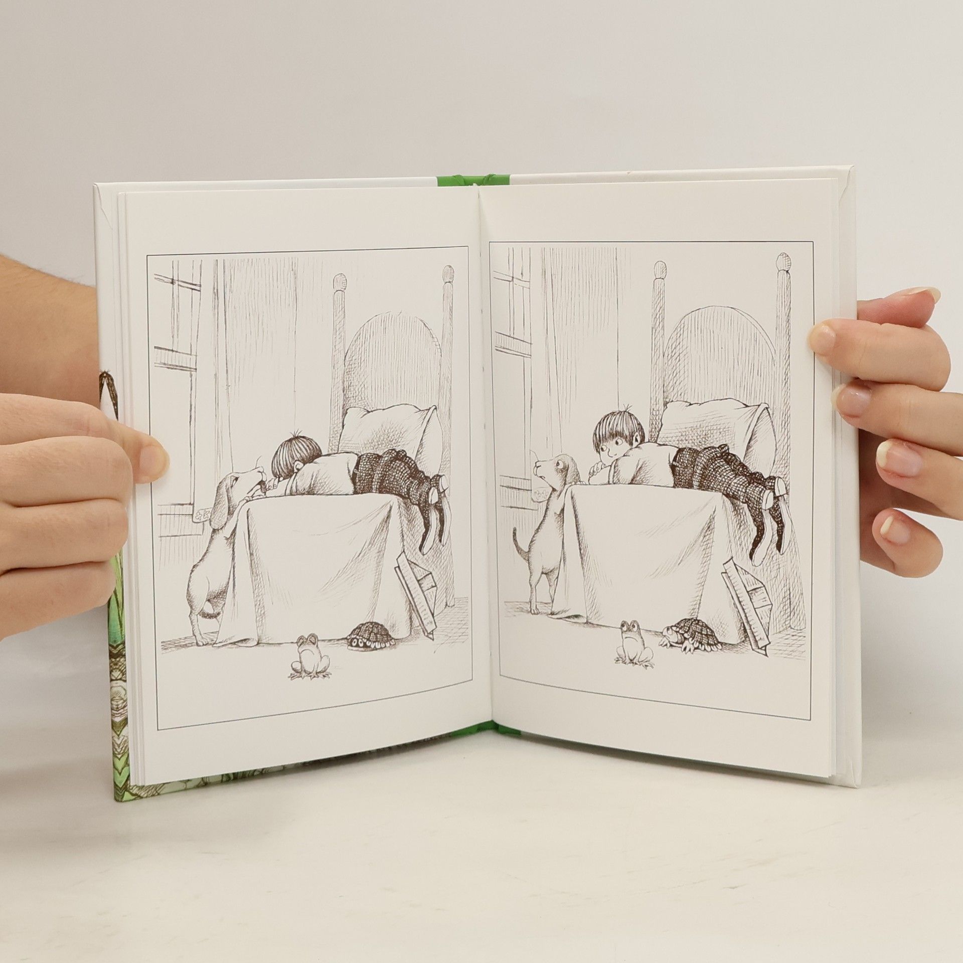 Chlapec dostane jako dárek nové zvířátko – malou žabičku. Jakpak se s tím asi vyrovnají jeho staří zvířecí přátelé? Zvlášť jeho kamarádka velká žába se na příchod další žáby netváří zrovna nadšeně... Půvabná obrázková knížka Mercera a Marianny Mayerových, která nepotřebuje žádná slova, přibližuje hodnotu kamarádství a nebezpečí žárlivosti.