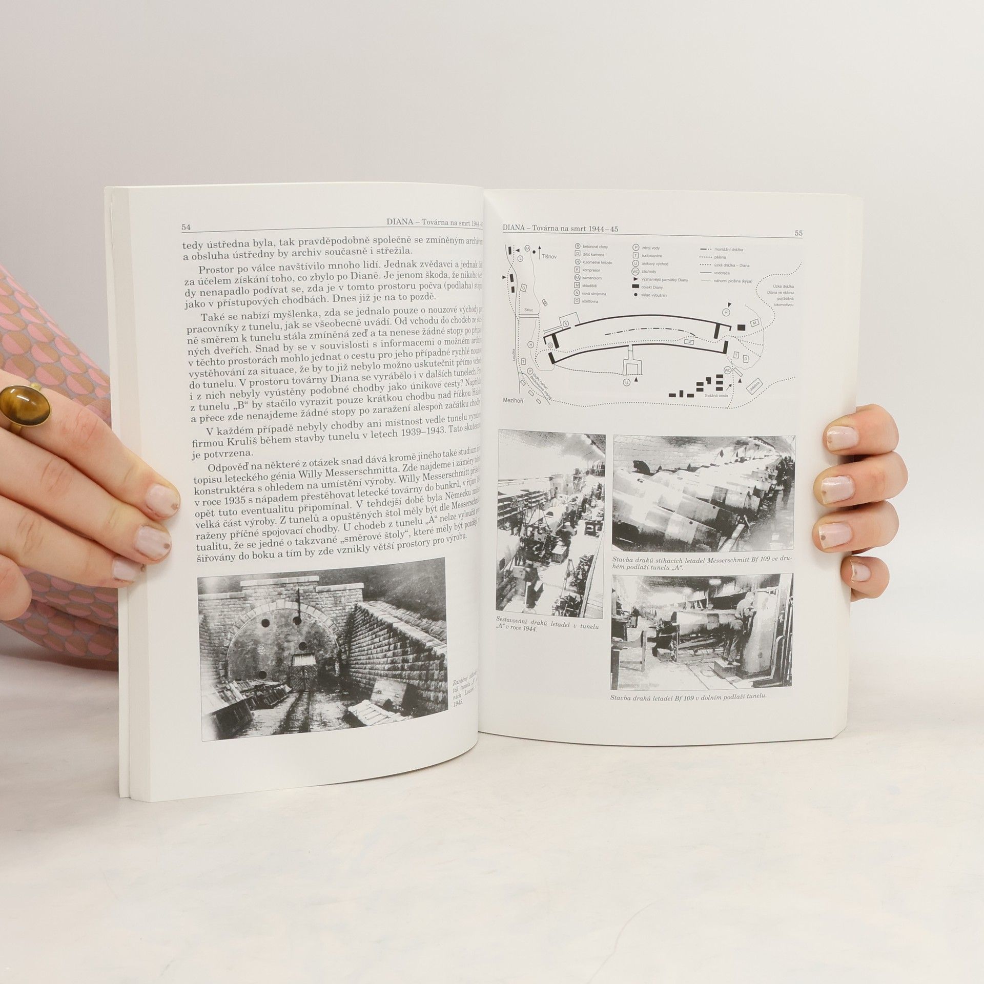 Autorova dlouhodobá práce v údolí třech říček (Loučky, Libochovky a Haldy) se od sedmdesátých let zaměřuje na leteckou výrobu v nedokončených železničních tunelech na trati 250. V roce 1944 se rozhodlo o zřízení závodu vídeňské Weiner Neustadter Flugzeugwerke v trase této trati, což mělo strategický význam, neboť zde bylo na podzim '44 kompletováno 8-10 letounů denně. Provoz nebyl dokončen a plány nacistů ohledně Diany zůstávají nejasné. Vnitropodnikovou dopravu zajišťovala 600 mm úzkorozchodná drážka, na kterou se kniha zaměřuje. Publikace nese podtitul "Z historie železniční trati Brno - Havlíčkův Brod" a téměř polovina obsahu dokumentuje válečný vývoj a poválečnou dostavbu trati 250 v místech bývalé Diany, která je terénně zajímavá. Kromě tří tunelů letecké továrny se zde nacházejí i dva technicky zajímavé mosty. Autor se k tématu staví velmi podrobně, přičemž zahrnuje více než tři stovky dobových i současných fotografií, vzpomínky pamětníků a technické nákresy, včetně samostatné přílohy s viaduktem v Dolních Loučkách.