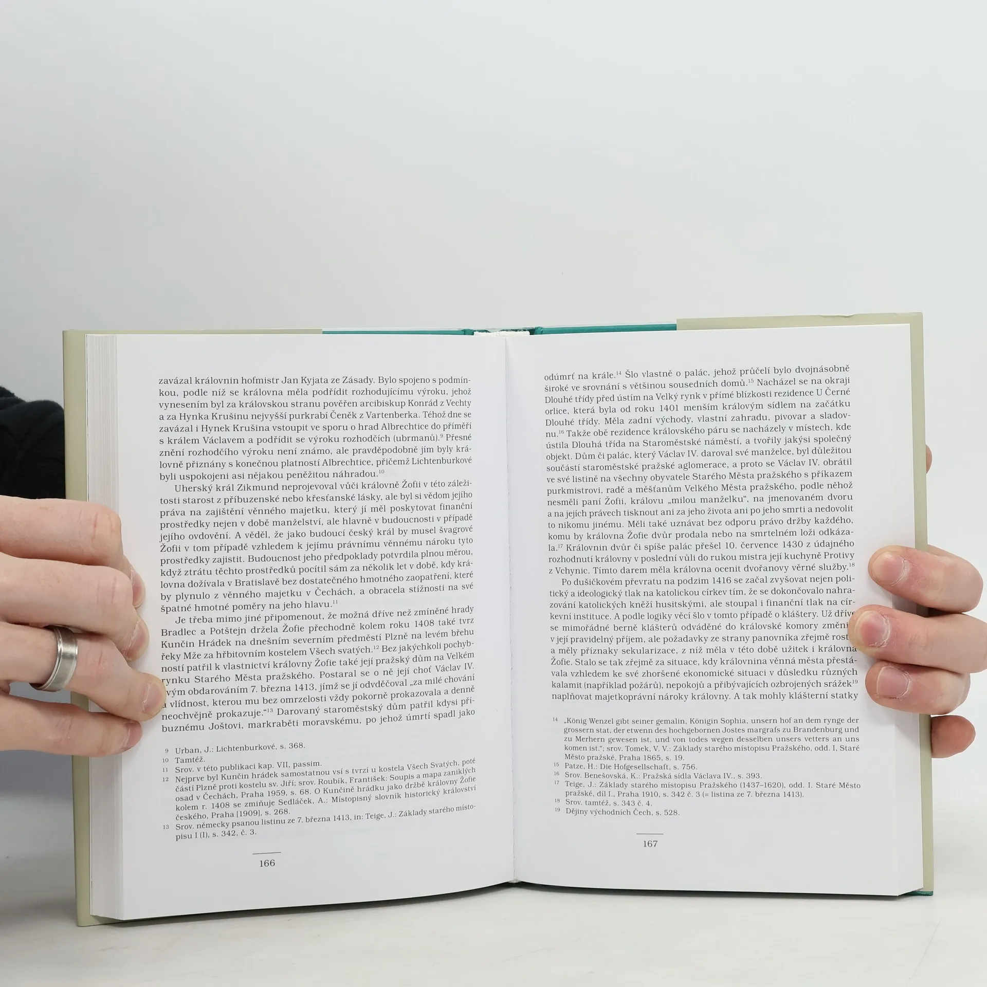 Druhá manželka krále Václava IV., pocházející z rodu bavorských Wittelsbachů, je hlavní postavou nové knihy historičky Boženy Kopičkové. Ta po Elišce Přemyslovně vřazuje do edice Velké postavy českých dějin už druhou z českých královen středověku. Žofie se v jejím podání představuje jako výrazná osobnost, zřejmě obdařená fyzickým půvabem, ale také přemýšlivá a citlivá. Autorka bourá zažité stereotypy o nešťastném manželství labilního českého krále Václava a jeho druhé ženy a dokazuje naopak, že jejich vztah byl, alespoň po jistou dobu, velmi pevný i šťastný. V turbulencích doby neodvratně směřující k propuknutí husitské revoluce se česká královna Žofie musela vyrovnávat s dramatickými událostmi, jako bylo například uvěznění jejího královského manžela, ale i s duchovními podněty reformního husitského směru. Podpora, kterou královna Žofie věrně poskytovala ranému husitství včetně jeho hlavního představitele, našla odraz i v Husových listech z Kostnice. Po smrti krále Václava IV. v roce 1419 byly další osudy královny-vdovy Žofie neradostné: odebrala se se švagrem, císařem Zikmundem, do exilu v Bratislavě, kde v nuzných podmínkách, nedůstojných středověkých královen-vdov, strávila zbytek života. Znovunalezená katolická zbožnost, ale i osobní hořkost a smutek se odrážely v černé barvě jejího oblečení, které nosila až do konce svých dní.