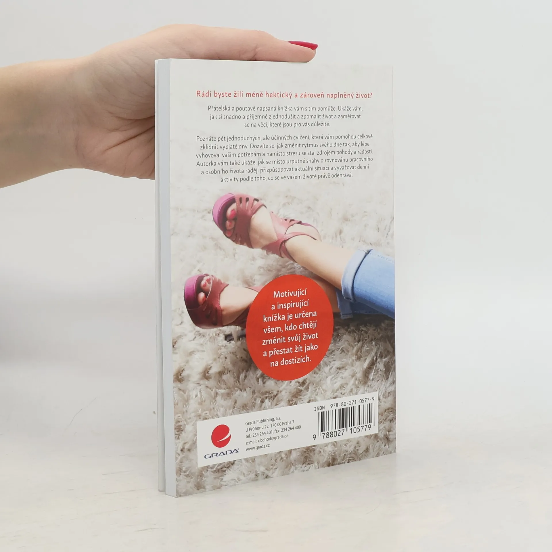 Rádi byste žili méně hektický a zároveň naplněný život? Přátelská a poutavě napsaná knížka vám s tím pomůže. Ukáže vám, jak si snadno a příjemně zjednodušit a zpomalit život a zaměřovat se na věci, které jsou pro vás důležité. Poznáte pět jednoduchých, ale účinných cvičení, která vám pomohou celkově zklidnit vypjaté dny. Dozvíte se, jak změnit rytmus svého dne tak, aby lépe vyhovoval vašim potřebám a namísto stresu se stal zdrojem pohody a radosti. Autorka vám také ukáže, jak se namísto urputné snahy o rovnováhu pracovního a osobního života raději přizpůsobovat aktuální situaci a vyvažovat denní aktivity podle toho, co se ve vašem životě právě odehrává. Motivující a inspirující knížka je určena všem, kdo chtějí změnit svůj život a přestat žít jako na dostizích.
