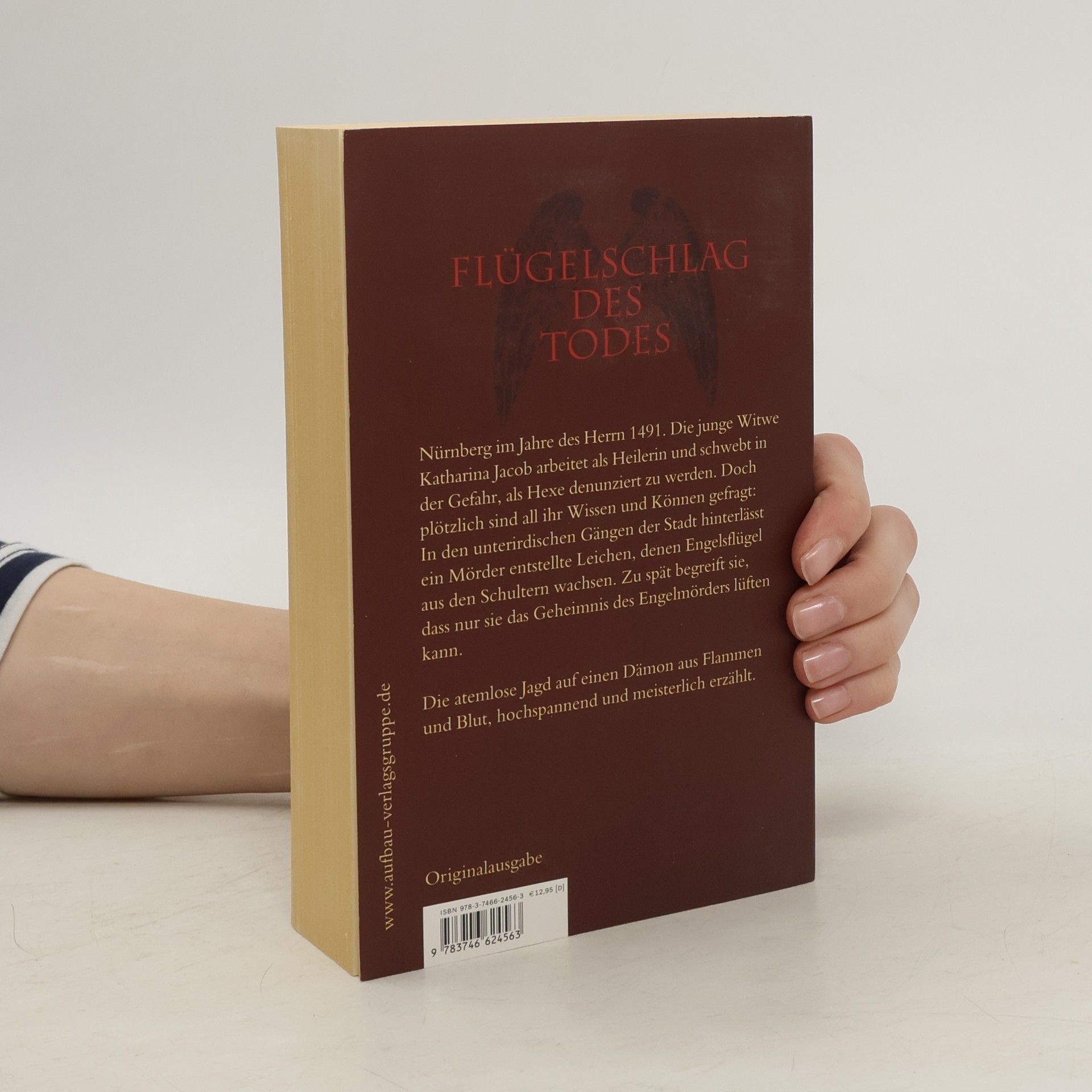 Flügelschlag des Todes Nürnberg im Jahre des Herrn 1491. Die junge Witwe Katharina Jacob arbeitet als Heilerin und schwebt in der Gefahr, als Hexe denunziert zu werden. Doch plötzlich sind all ihr Wissen und Können gefragt: In den unterirdischen Gängen der Stadt hinterlässt ein Mörder entstellte Leichen, denen Engelsflügel aus den Schultern wachsen. Zu spät begreift sie, dass nur sie das Geheimnis des Engelmörders lüften kann. Die atemlose Jagd auf einen Dämon aus Flammen und Blut, hochspannend und meisterlich erzählt.