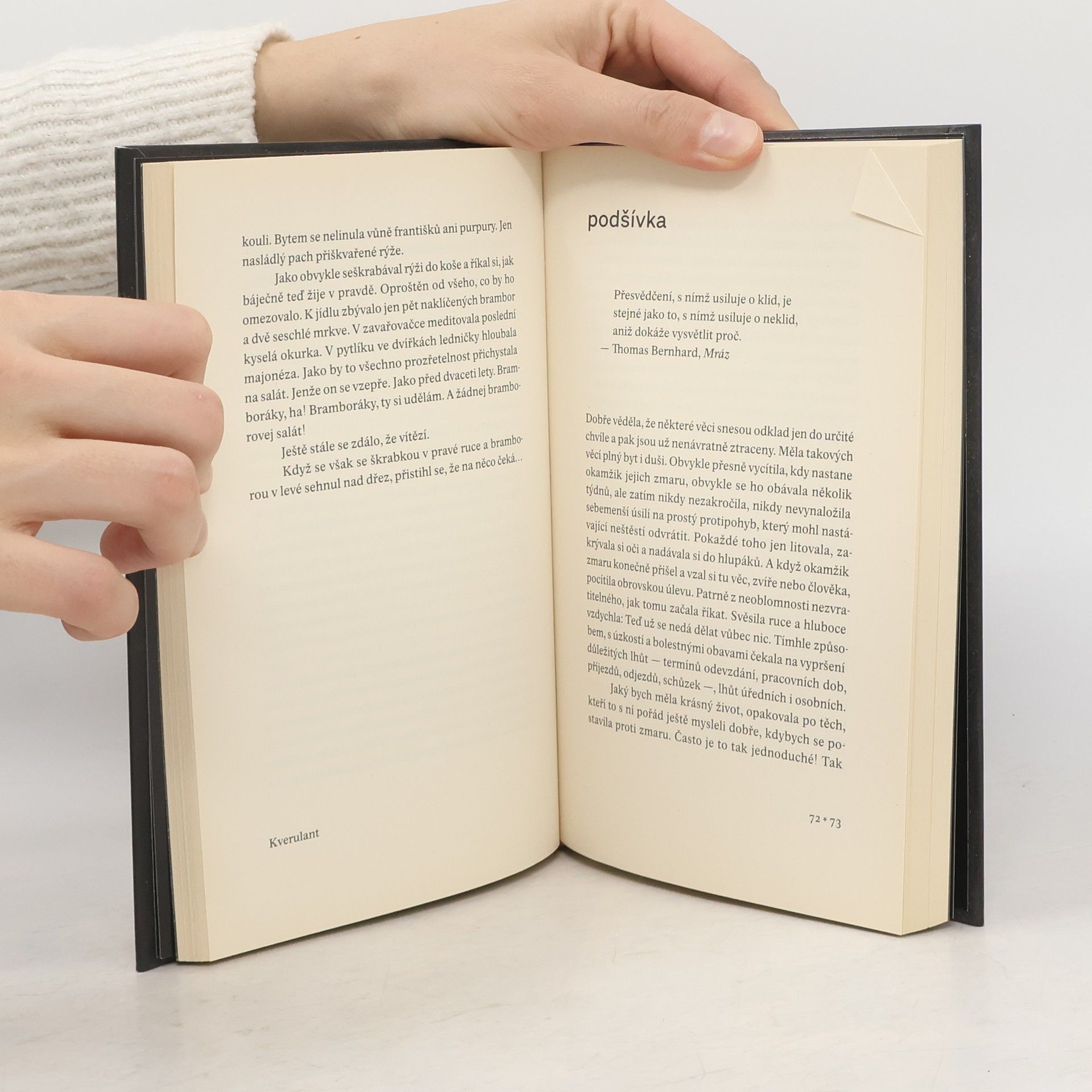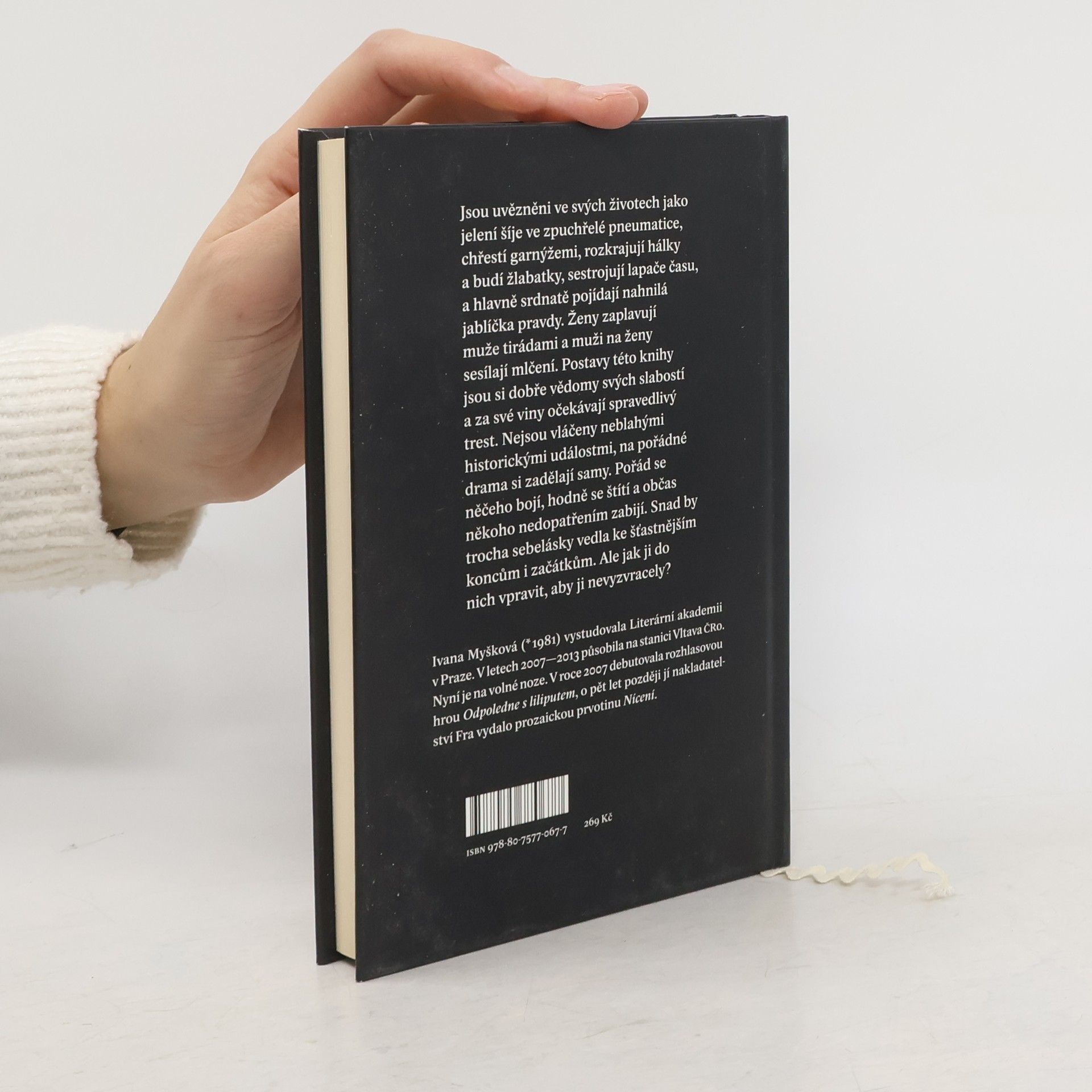 Postavy uvězněné ve svých životech jako jelení šíje ve zpuchřelé pneumatice. Chřestí garnýžemi, nosí si domů odstraňovače žmolků, sbírají vzorky vorvaního dechu, rozkrajují hálky a budí žlabatky, prokousávají se obludnými želatinovými medvědy, sestrojují lapače času, a hlavně srdnatě pojídají nahnilá jablíčka pravdy. Ženy zaplavují muže tirádami a muži ženy mlčením. Všichni jsou trochu nahluchlí a vychýlení z rovnováhy, tihle lidé možností, kteří čelí teroru nejednoznačnosti. Jsou si dobře vědomi svých slabostí, vad a chyb a očekávají za své viny spravedlivý trest v podobě klíče zmizelého pod podšívkou, pádu do vnitrobloku, vyhození z bytu vlastním hostem nebo znásilnění. Jestliže se Ivana Myšková v ceněné prozaické prvotině Nícení soustředila hlavně na co nejpřesnější zprostředkování zjitřených stavů hlavní protagonistky, tyto vytříbené povídky působí příběhověji a čiší z nich radost z fabulace. Jestliže byl literární jazyk Nícení cudný a současně ohýbaný až k zaumnosti, tady je Myšková věcnější, cyničtější a občas mravenčivě nemravná.