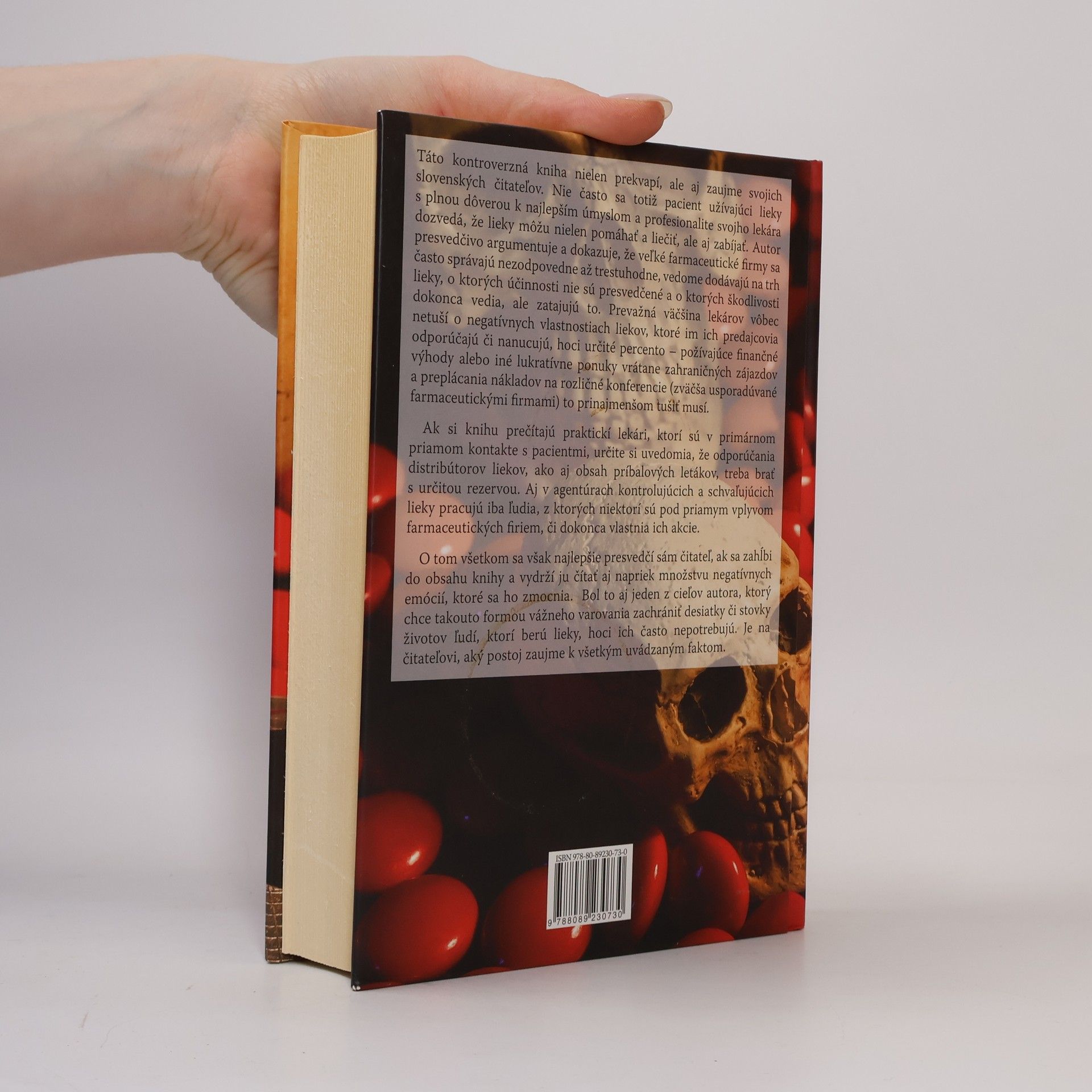 Autor presvedčivo argumentuje a dokazuje, že veľké farmaceutické firmy sa často správajú nezodpovedne až trestuhodne, vedome dodávajú na trh lieky, o ktorých účinnosti nie sú presvedčené a o ktorých škodlivosti dokonca vedia, ale zatajujú to. Prevažná väčšina lekárov vôbec netuší o negatívnych vlastnostiach liekov, ktoré im ich predajcovia odporúčajú či nanucujú, hoci určité percento - požívajúce finančné výhody alebo iné lukratívne ponuky vrátane zahraničných zájazdov a preplácania nákladov na rozličné konferencie (zväčša usporadúvané farmaceutickými firmami) to prinajmenšom tušiť musí.
