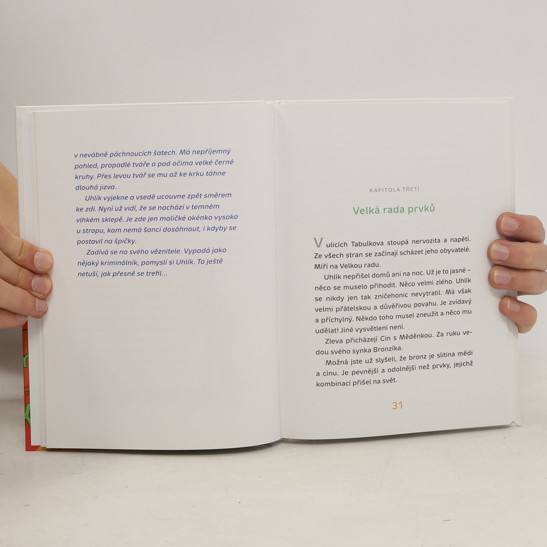 Tato neobvyklá kniha s dobrodružným příběhem přivede děti do říše droboučkých postaviček, které působí magicky, a přece jsou zcela skutečné – do říše chemických prvků. Všechno, co kolem sebe vidíme, čeho se můžeme dotknout, ale i vzduch, který dýcháme, to vše je tvořeno maličkými neviditelnými částečkami. Jsou jako písmenka abecedy, kterou je napsán celý náš svět. Seznamte se s paní mámou Chlorovou, malou Kyslinkou a jejími bratry Vodíky, Fluorkou, Bromíkem, Křemdou, Bronzíkem, Siřinkou, Rtutíkem a jejich sousedy. Čím lépe říši chemických prvků porozumíme, tím lépe porozumíme světu kolem sebe. A nepřihodí se nám to, co se to stalo panu Runsaklovi, kterému se neznalost chemických prvků málem stala osudnou! Toho dne, kdy příběh této knihy začal, nejprve nic neukazovalo na to, že se Tabulkov vzápětí obrátí vzhůru nohama...