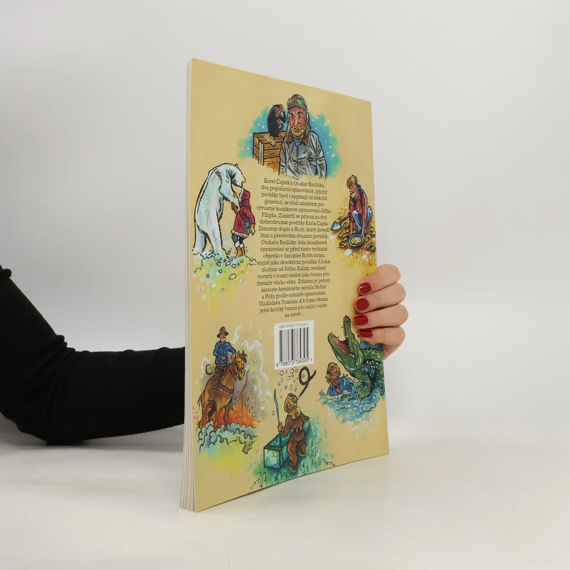 Karel Čapek a Otakar Batlička, dva populární spisovatelé, jejichž povídky baví i napínají už několik generací, se stali námětem pro výtvarné komiksové zpracování Jiřího Filípka. Zaměřil se přitom na dvě dobrodružné povídky Karla Čapka "Ztracený dopis" a "Hoch, který dovedl lítat" a především dvanáct povídek Otakara Batličky. Zdařilé je i zpracování detektivní povídky "9,5 mm zločinu" od Jiřího Kaliny. Zvláštní je potom historie kresleného seriálu Robin a Páťa podle scénáře spisovatele Vladislava Tomana. A k tomu všemu obsahuje sešit krátký bonus pro malé i velké na závěr…