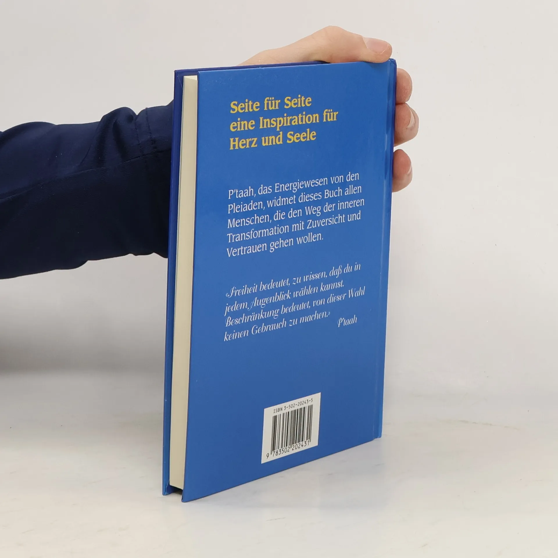 Seite für Seite eine Inspiration für Herz und Seele P´taah, das Energiewesen von den Pleiaden, widmet dieses Buch allen Menschen, die den Weg der inneren Transformation mit Zuversicht und Vertrauen gehen wollen. „Freiheit bedeutet, zu wissen, dass du in jedem Augenblick wählen kannst. Beschränkung bedeutet, von dieser Wahl keinen Gebrauch zu machen.“ Im Juni konnten über 1500 Menschen den geistigen Lehrer P'taah, gechannelt durch die Australierin Jani King, persönlich in Hamburg, München und Bonn erleben. Kaum ein Lehrer erläutert die Gesetzmäßigkeiten, denen unser menschliches Leben unterliegt, in einer so einfachen und klaren Sprache. In diesem wunderschönen Büchlein finden Sie die Essenz seines Lehrens. Der Text jeder Seite bietet tiefreichende Nahrung für unseren Alltag, für das Verständnis unseres Lebens, den liebevollen Umgang mit uns und unseren Mitmenschen. P'Taah führt jeden zu einem stark erweiterten und höher schwingenden Bewusstseinszustand, der es uns erlaubt, unser Leben zu lieben und in Freude und Leichtigkeit zu leben.