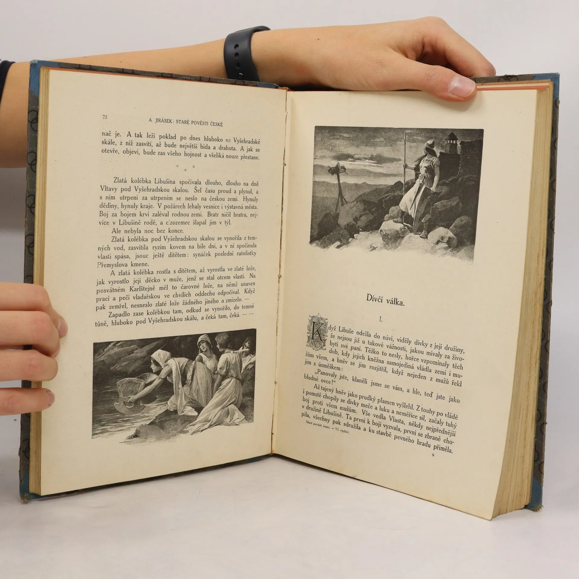 Poslyšte o našem praotci, o předcích, jak přišli do končin naší vlasti a usadili se po Labi a po Vltavě i po jiných řekách této země. Slyšte i, co více dochovalo se z temnoty věků, co zůstalo z báječných vypravování přešlých pokolení, jež klaněla se bohům v šeru starých hájů a jež obětovala studánkám v tichých ouvalech, jezerům i řekám i svatému, živému ohni ... Pojďte a poslyšte pověsti dávných časů...