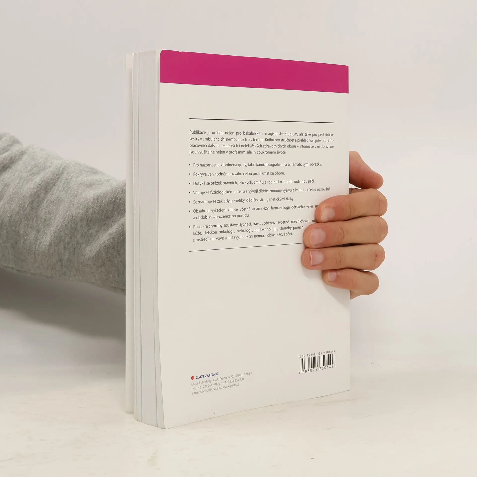 Publikace je určena nejen pro bakalářské a magisterské studium, ale také pro pediatrické sestry v ambulancích, nemocnicích a v terénu. Knihu pro stručnost a přehlednost jistě ocení též pracovníci dalších lékařských i nelékařských zdravotnických oborů – informace v ní obsažené jsou využitelné nejen v profesním, ale i v soukromém životě. Kniha je doplněna pro názornost grafy, tabulkami, fotografiemi a schematickými obrázky. Kniha má podporu výboru České pediatrické společnosti a ČASu. Publikace pokrývá ve vhodném rozsahu celou problematiku oboru. Dotýká se otázek právních, etických, zmiňuje rodinu i náhradní rodinnou péči. Věnuje se fyziologickému růstu a vývoji dítěte, zmiňuje výživu a imunitu včetně očkování. Seznamuje se základy genetiky, dědičností a genetickými riziky.