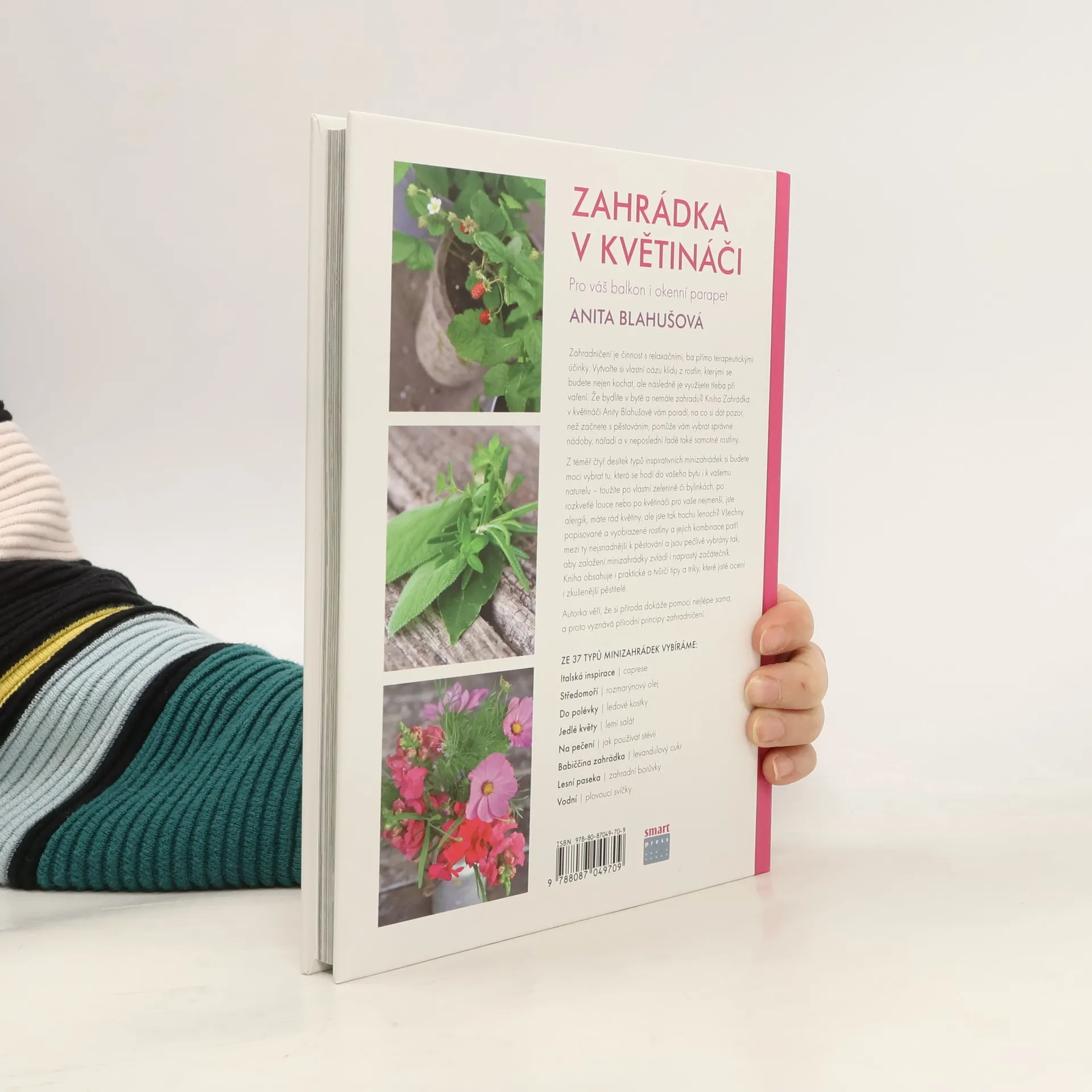 Celé dny trávíme uvnitř – ať už doma nebo v práci – odtrženi od zeleně a čerstvého vzduchu. Zahradničení je činnost s relaxačními, ba přímo terapeutickými účinky. Vytvořte si vlastní oázu klidu z rostlin, kterými se budete nejen kochat, ale následně je využijete třeba při vaření nebo jako zábavu pro děti. Že bydlíte v bytě a nemáte zahradu? K vytvoření minizahrádky vám postačí balkon nebo okenní parapet! Kniha Zahrádka v květináči Anity Blahušové vám poradí na co si dát pozor, než začnete s pěstováním, pomůže vám vybrat správné nádoby, nářadí a také rostliny vhodné právě pro váš domov. Krok za krokem s vámi rostliny zasadí, zbývá už jen zvolit si ten pravý typ zahrádky. Ze 37 inspirativních minizahrádek si budete moci vybrat tu, která se hodí do vašeho bytu i k vašemu naturelu – toužíte po vlastní zelenině či bylinkách, po rozkvetlé louce nebo po květináči pro vaše nejmenší, jste alergik, máte rádi květiny, ale jste tak trochu lenoch? Všechny popisované a vyobrazené rostliny a jejich kombinace patří mezi ty nejsnadnější k pěstování a jsou pečlivě vybrané tak, aby založení mini zahrádky zvládl i naprostý začátečník. Kniha obsahuje i praktické a tvůrčí tipy a triky, které jistě ocení i letití zahrádkáři.