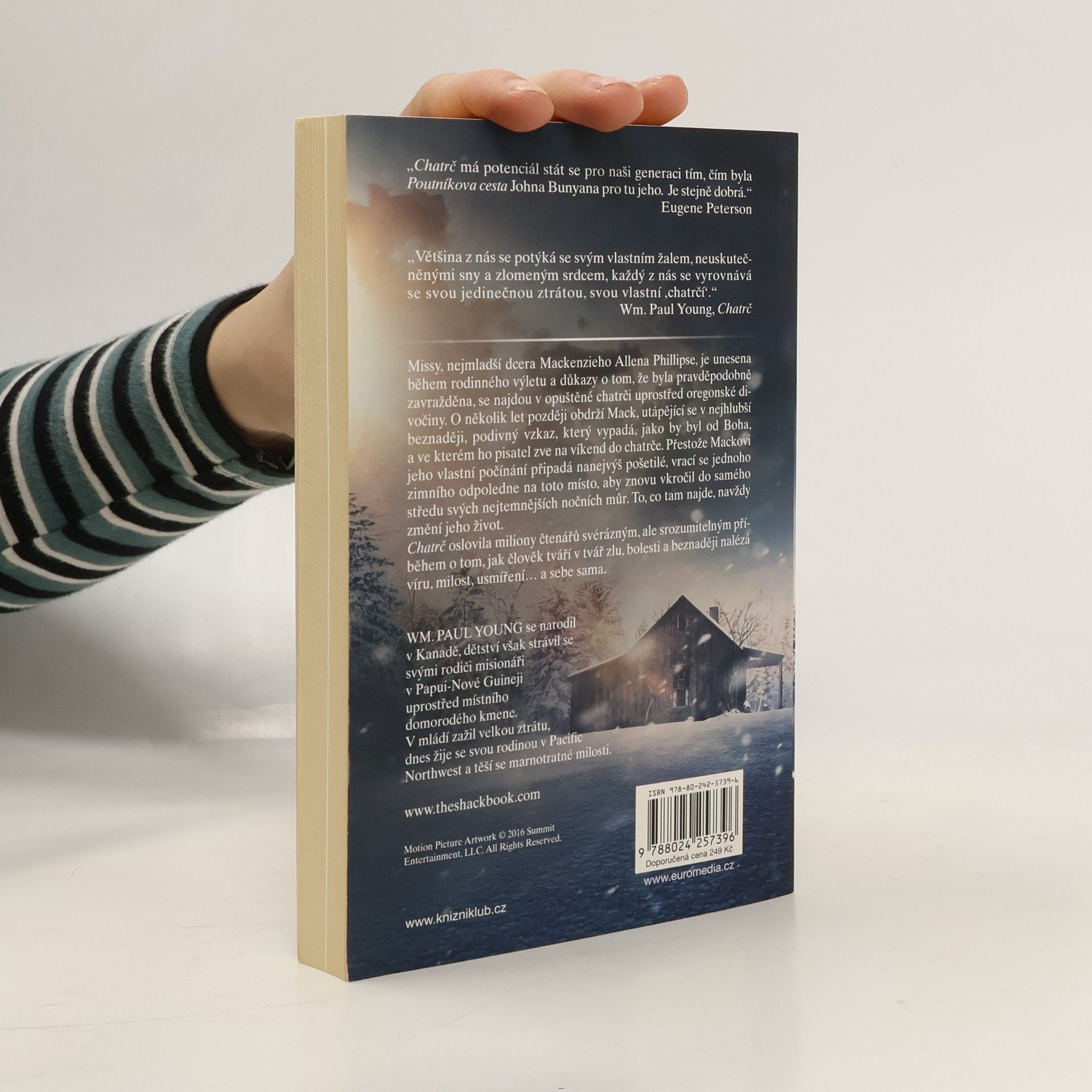 Missy, nejmladší dcera Mackenzieho Allena Phillipse, je unesena během rodinného výletu a důkazy o tom, že byla pravděpodobně zavražděna, se najdou v opuštěné chatrči uprostřed oregonské divočiny. Mack se tam díky podivné výzvě, kterou obdrží pár let poté, vrací, aby znovu vkročil do samého středu svých nejtemnějších nočních můr. To, co tam najde, navždy změní jeho život… Celosvětový bestseller – dosud prodáno více než 20 milionů výtisků – je neobyčejným příběhem o tom, jak člověk tváří v tvář zlu, bolesti a beznaději nalézá Boha, milost a usmíření… a sebe sama. V dlouho očekávané filmové adaptaci se hlavních rolí ujali Sam Worthington (Avatar) a Octavia Spencerová (Černobílý svět).