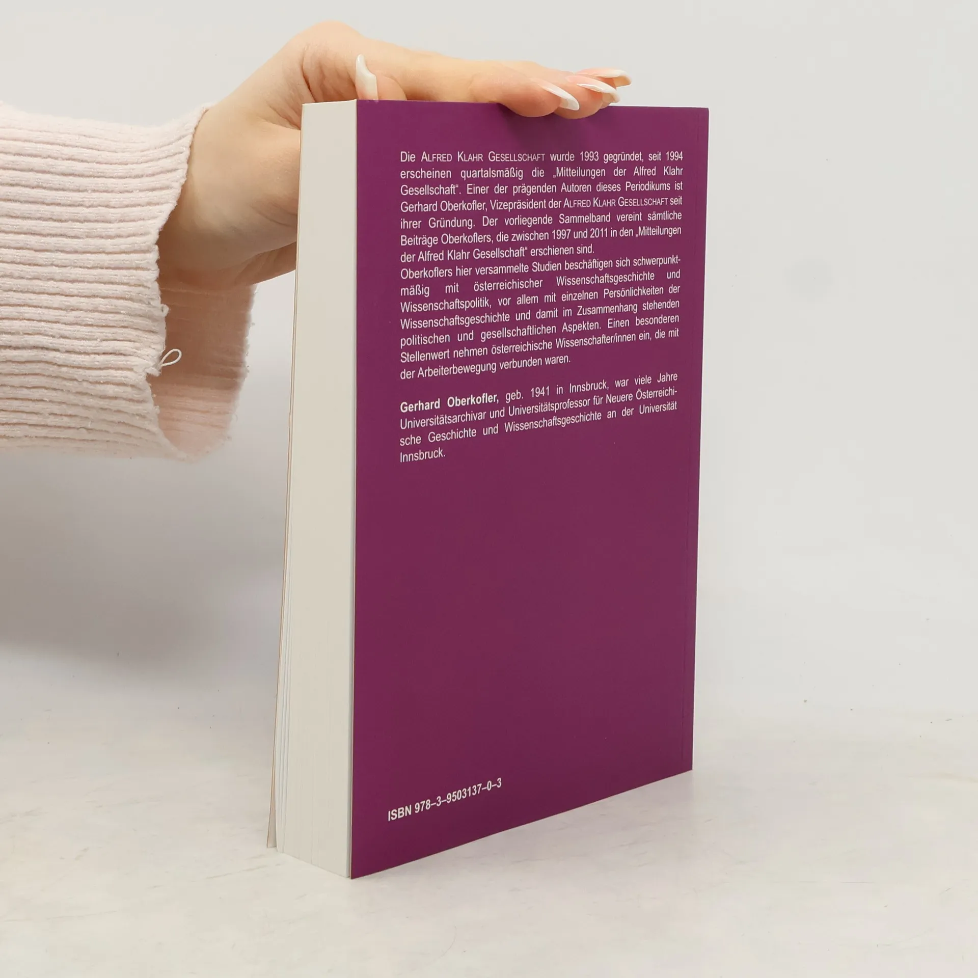 Die Alfred Klahr Gesellschaft wurde 1993 gegründet, seit 1994 erscheinen quartalsmäßig die „Mitteilungen der Alfred Klahr Gesellschaft“. Einer der prägenden Autoren dieses Periodikums ist Gerhard Oberkofler, Vizepräsident der Alfred Klahr Gesellschaft seit ihrer Gründung. Der vorliegende Sammelband vereint sämtliche Beiträge Oberkoflers, die zwischen 1997 und 2011 in den „Mitteilungen der Alfred Klahr Gesellschaft“ erschienen sind. Oberkoflers hier versammelte Studien beschäftigen sich schwerpunktmäßig mit österreichischer Wissenschaftsgeschichte und Wissenschaftspolitik, vor allem mit einzelnen Persönlichkeiten der Wissenschaftsgeschichte und damit im Zusammenhang stehenden politischen und gesellschaftlichen Aspekten. Einen besonderen Stellenwert nehmen österreichische Wissenschafter/innen ein, die mit der Arbeiterbewegung verbunden waren.