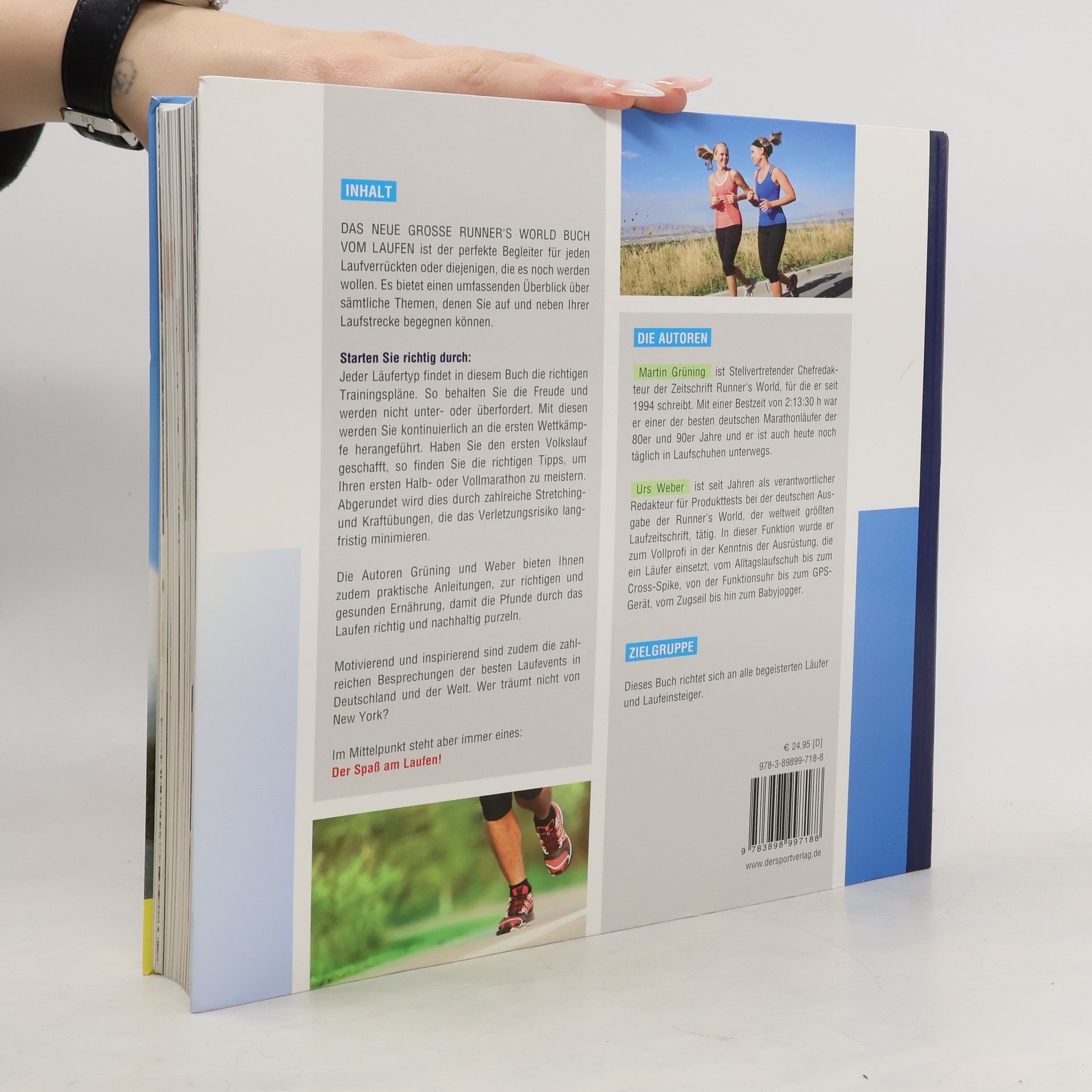 Das Neue Große Runner‘s World Buch Vom Laufen ist der perfekte Begleiter für jeden Laufverrückten oder diejenigen, die es noch werden wollen. Es bietet einen umfassenden Überblick über sämtliche Themen, denen Sie auf und neben Ihrer Laufstrecke begegnen können. Starten Sie richtig durch: Jeder Läufertyp findet in diesem Buch die richtigen Trainingspläne. So behalten Sie die Freude und werden nicht unter- oder überfordert. Mit diesen werden Sie kontinuierlich an die ersten Wettkämpfe herangeführt. Haben Sie den ersten Volkslauf geschafft, so finden Sie die richtigen Tipps, um Ihren ersten Halb- oder Vollmarathon zu meistern. Abgerundet wird dies durch zahlreiche Stretching- und Kraftübungen, die das Verletzungsrisiko langfristig minimieren. Die Autoren Grüning und Weber bieten Ihnen zudem praktische Anleitungen, zur richtigen und gesunden Ernährung, damit die Pfunde durch das Laufen richtig und nachhaltig purzeln. Motivierend und inspirierend sind zudem die zahlreichen Besprechungen der besten Laufevents in Deutschland und der Welt. Wer träumt nicht von New York? Im Mittelpunkt steht aber immer eines: Der Spaß am Laufen!