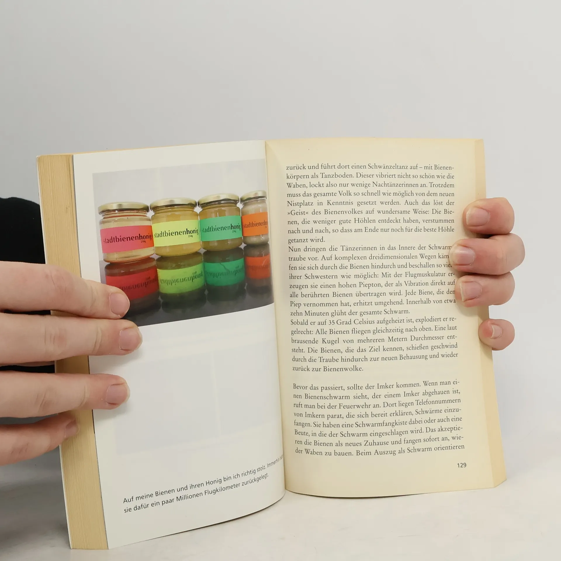 Erika Mayr ist Imkerin – und das mitten in Berlin. Seit sie ihr erstes Bienenvolk »adoptiert« hat, ist sie fasziniert von den nützlichen Tierchen. Ihre Bienenvölker stehen auf einem Hochhausdach in Kreuzberg, umgeben von belebten Straßen und vielen versteckten Parks und Gärten. Bald lernt die Imkerin, dass ihre Stadtbienen für Überraschungen gut sind: So musste sie schon verirrte Völker vom Abgeordnetenhaus abholen oder ein schwärmendes Bienenvolk aus einem Baum an einer Hauptstraße einfangen. Nun erzählt Erika Mayr von ängstlichen Nachbarn, ihren acht Großvätern aus dem Imkerverein und natürlich von ihren Stadtbienen. Dem Honig wohnen viele Geschichten inne.