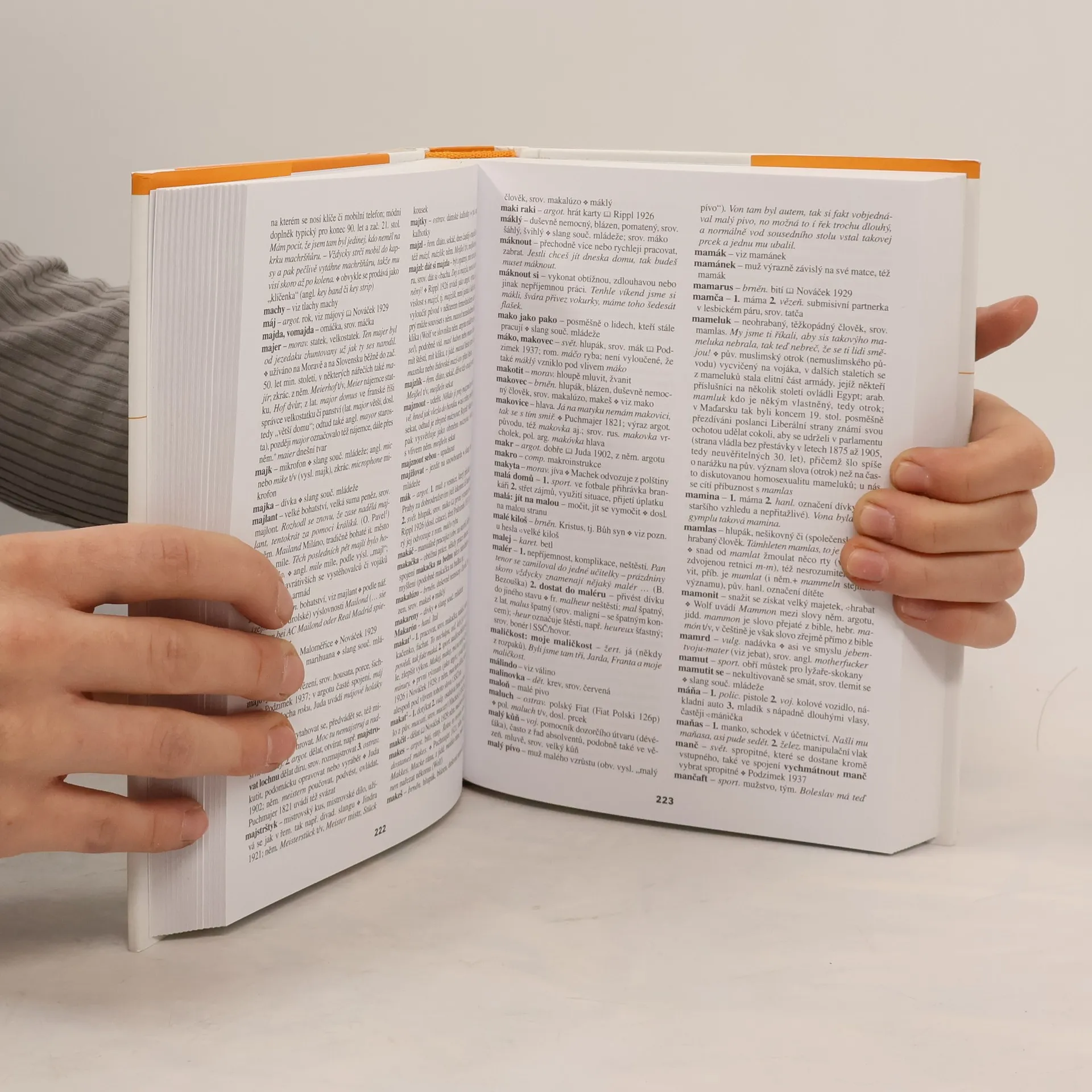 Vedle tradičních profesních slangů z řemeslnického, železničářského, motoristického či hornického prostředí obsahuje slovník např. také slang současné mládeže, včetně slangu studentského (AKÁDA, MEGEŠ, MEMBL, ZAPÍCT) či mluvy uživatelů drog (ŠPEK, PIKO, FÉRÁK, HALUŠKY). Na klasický kriminální argot navazuje současný vězeňský slang (KVIKOŇ, DYLIŇÁK, ELPASO, KAMIKÓRY, DŽÍPOVAT, PROKINELIT), zařazen je i méně známý argot světských (JAUNERÁK, MULÁK, TÁTRUM, DEVLÍNEK, JAMBORA, DŽUKEL). Pozornost je věnována i tradičnímu brněnskému argotu (LAJVONT, PALI, RÁČNY, MÓDR, ROLA) či ostravské městské mluvě (BEBECHY, LAJVONT, DAJNY, HOCHMES, VOLTR, ŠINAGLE). Hesla jsou doplněna poznámkami o historii a původu slov, čímž slovník odhaluje skryté významy i řadu překvapivých souvislostí, ukazuje „úctyhodné“ stáří řady výrazů zdánlivě moderních (ČÓRKA, BENGA, KÉRKA, VEJŠKY, ŠILINGR) či vulgárních (LOFAS, KULOVÝ, PEPŘIT, SEDLÁK). 2., rozšířené vydání