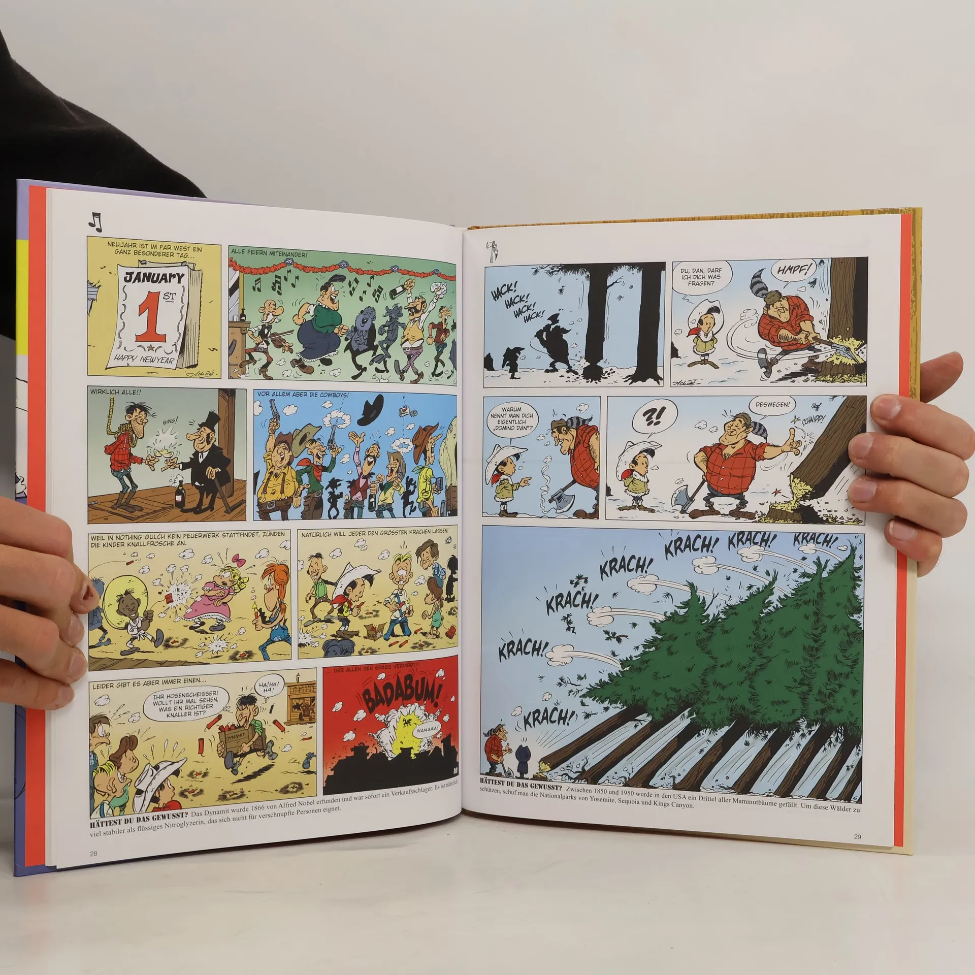 Wer sein Lasso schneller werfen kann als sein Schatten, der muss sich auch nicht wundern, dass Hufeisen Zahnweh verursachen können, für eine Band-Gründung auch mal ein Sargdeckel herhalten muss, coole Raucher durchaus heiße Präriebrände verursachen können, ein Hase sich auch mal als Bär entpuppt, Indianer hervorragende Frisuren anfertigen, mit Geigen auf Jagd gehen, und ein Pferd sich die Hufe selbst beschlägt. Oh, selige Kindheit, oh Lucky Kid! Wer da nicht lacht, ist selbst schuld!