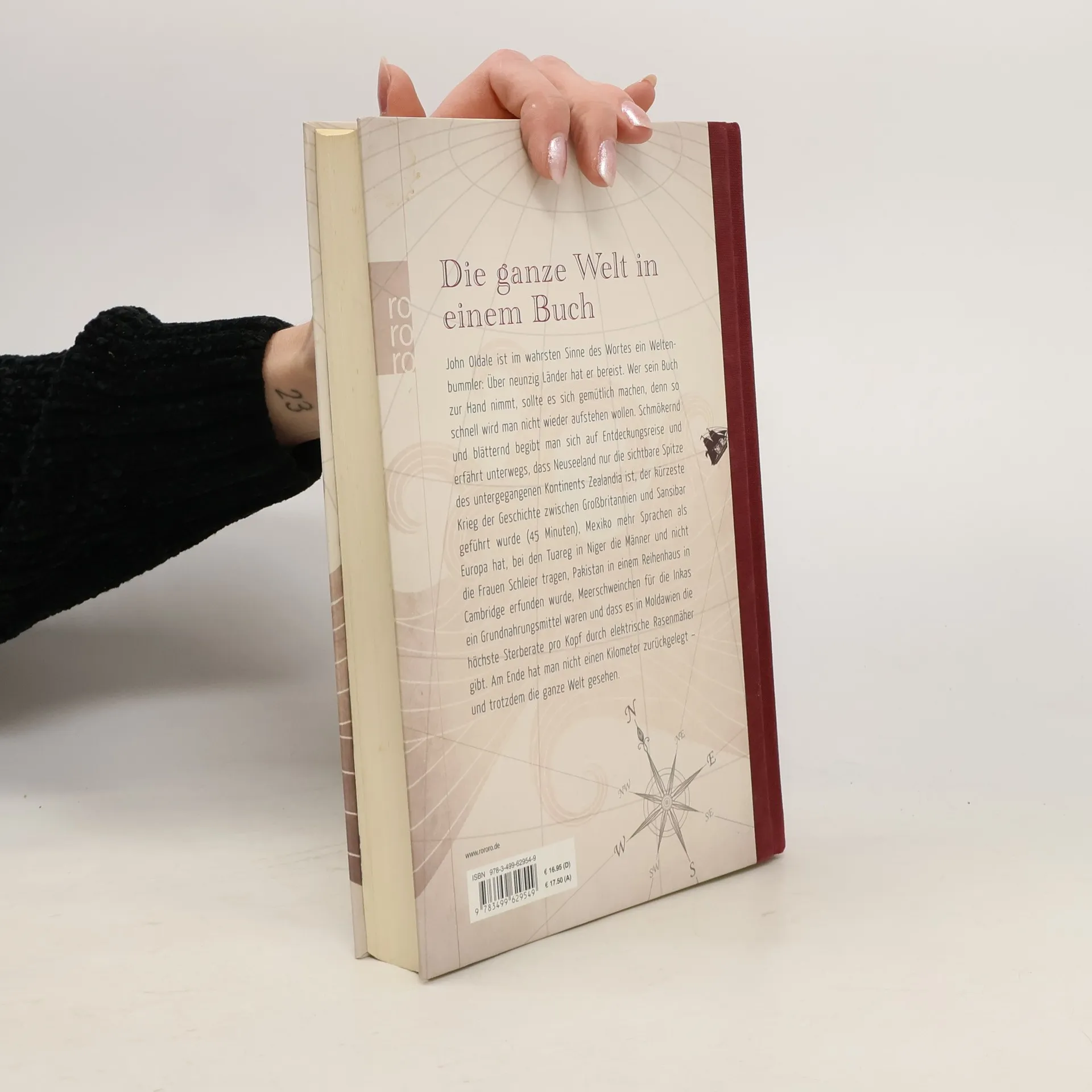 Die ganze Welt in einem Buch John Oldale ist im wahrsten Sinne des Wortes ein Weltenbummler: Über neunzig Länder hat er bereist. Wer sein Buch zur Hand nimmt, sollte es sich gemütlich machen, denn so schnell wird man nicht wieder aufstehen wollen. Schmökernd und blätternd begibt man sich auf Entdeckungsreise und erfährt unterwegs, dass Neuseeland nur die sichtbare Spitze des untergegangenen Kontinents Zealandia ist, der kürzeste Krieg der Geschichte zwischen Großbritannien und Sansibar geführt wurde (45 Minuten), Mexiko mehr Sprachen als Europa hat, bei den Tuareg in Niger die Männer und nicht die Frauen Schleier tragen, Pakistan in einem Reihenhaus in Cambridge erfunden wurde, Meerschweinchen für die Inkas ein Grundnahrungsmittel waren und dass es in Moldawien die höchste Sterberate pro Kopf durch elektrische Rasenmäher gibt. Am Ende hat man nicht einen Kilometer zurückgelegt – und trotzdem die ganze Welt gesehen.