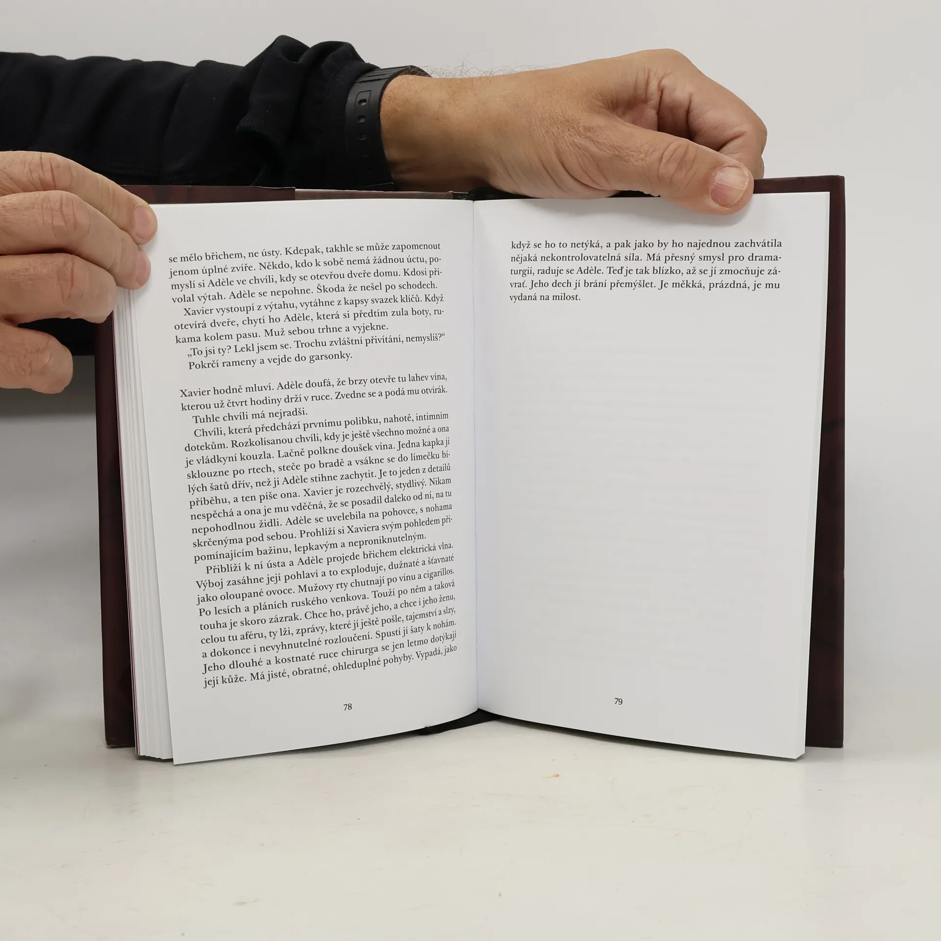 Je mladá, krásná, úspěšná. Má zajímavou práci novinářky, milujícího manžela a roztomilého synka. Tak proč ty stále hlubší kruhy pod očima? Adele Robinsonová, tajemná antihrdinka Leily Slimaniové, neuroticky podvádějící manžela, kdykoli se jí naskytne příležitost, je žena s nejasnou diagnózou. Zmítaná mezi neustálým strachem a chorobnou touhou po uznání, vůlí vzepřít se nástrahám a slastí jim podlehnout, potácí se mezi pohodlím měšťáckého života, které potřebuje, ačkoli jím pohrdá, a obsesivní nezřízeností, která ji zraňuje.
