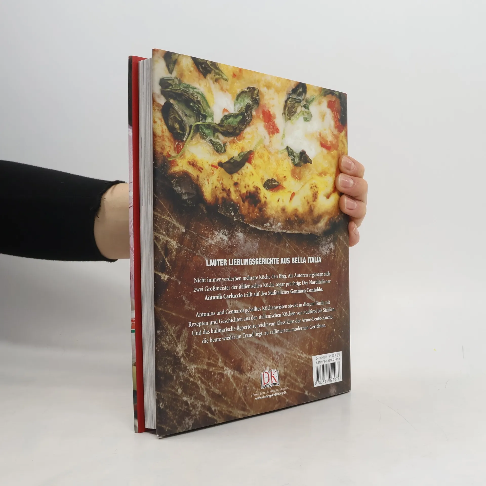 Gefüllte Zucchiniröllchen, Steinpilzsalat, Gnocchi alla Romana, Weißweintagliatelle mit Pilzsauce, Zitronenhähnchen mit Oliven und Thymian, Walnusspesto, echte neapolitanische Pizza oder karamellisierter Orangenkuchen - bei diesen Gerichten läuft einfach jedem das Wasser im Mund zusammen. Trattoria-Küche versammelt rund 100 authentische Rezepte - ausgewählt und kombiniert von den beiden sympathischen Altmeistern der italienischen Küche, Antonio Carluccio und Cennaro Contaldo, der als Mentor von Jamie Oliver bekannt ist. Essays, Geschichten und Fotos der sympathischen Köche ergänzen die Rezepte und begleiten auf eine kulinarische Entdeckungsreise - von Südtirol bis Sizilien. Trattoria-Küche ist ein Kochbuch mit unvergleichlichem Charme, das nicht nur Italien-Fans begeistern wird!