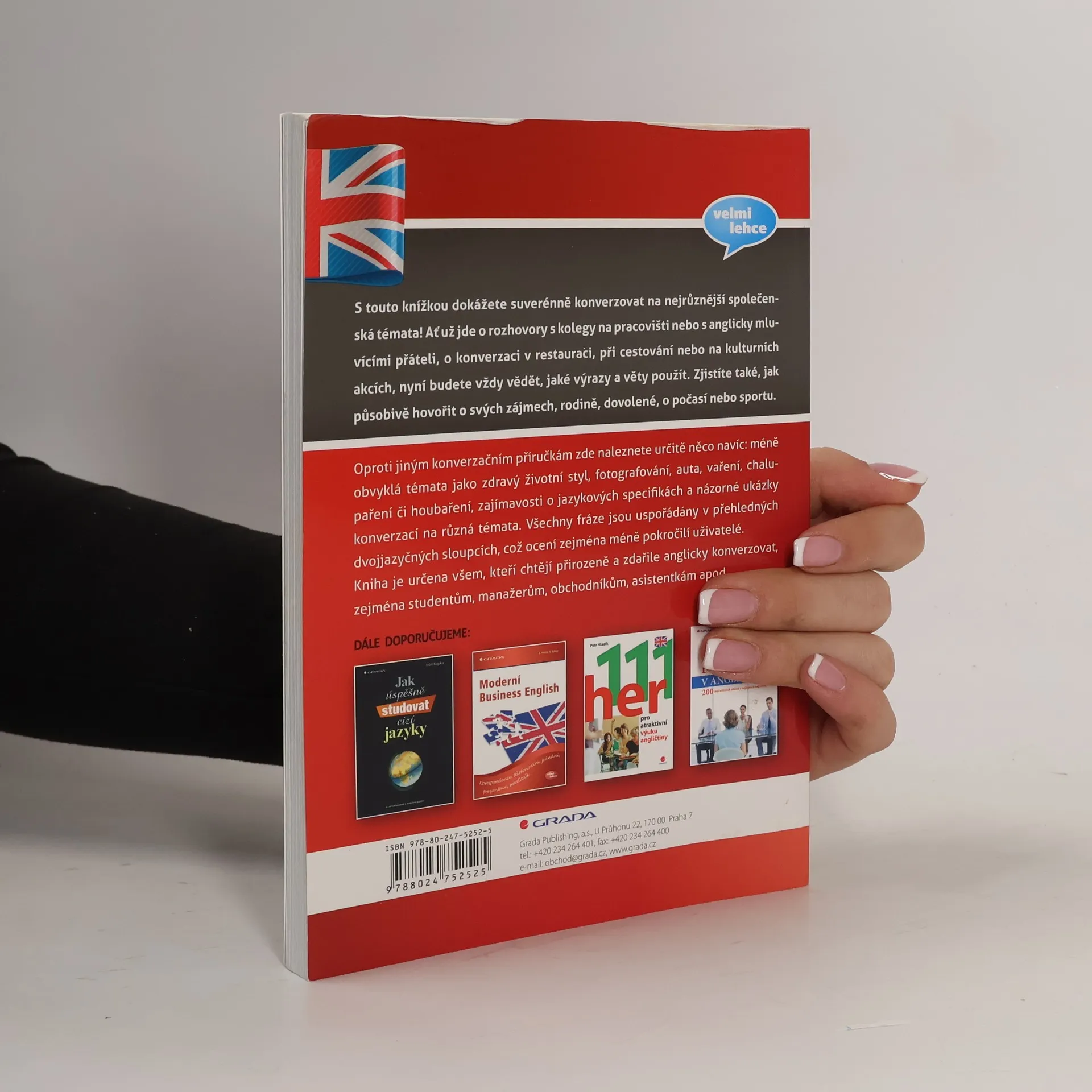 S touto knížkou dokážete suverénně konverzovat na nejrůznější společenská témata! Ať už jde o rozhovory s kolegy na pracovišti nebo s anglicky mluvícími přáteli, o konverzaci v restauraci, při cestování nebo na kulturních akcích, nyní budete vždy vědět, jaké výrazy a věty použít. Zjistíte také, jak působivě hovořit o svých zájmech, rodině, dovolené, o počasí nebo sportu. Oproti jiným konverzačním příručkám zde naleznete určitě něco navíc: méně obvyklá témata jako zdravý životní styl, fotografování, auta, vaření, chalupaření či houbaření, zajímavosti o jazykových specifikách a názorné ukázky konverzací na různá témata. Všechny fráze jsou uspořádány v přehledných dvojjazyčných sloupcích, což ocení zejména méně pokročilí uživatelé. Kniha je určena všem, kteří chtějí přirozeně a zdařile anglicky konverzovat, zejména studentům, manažerům, obchodníkům, asistentkám apod.