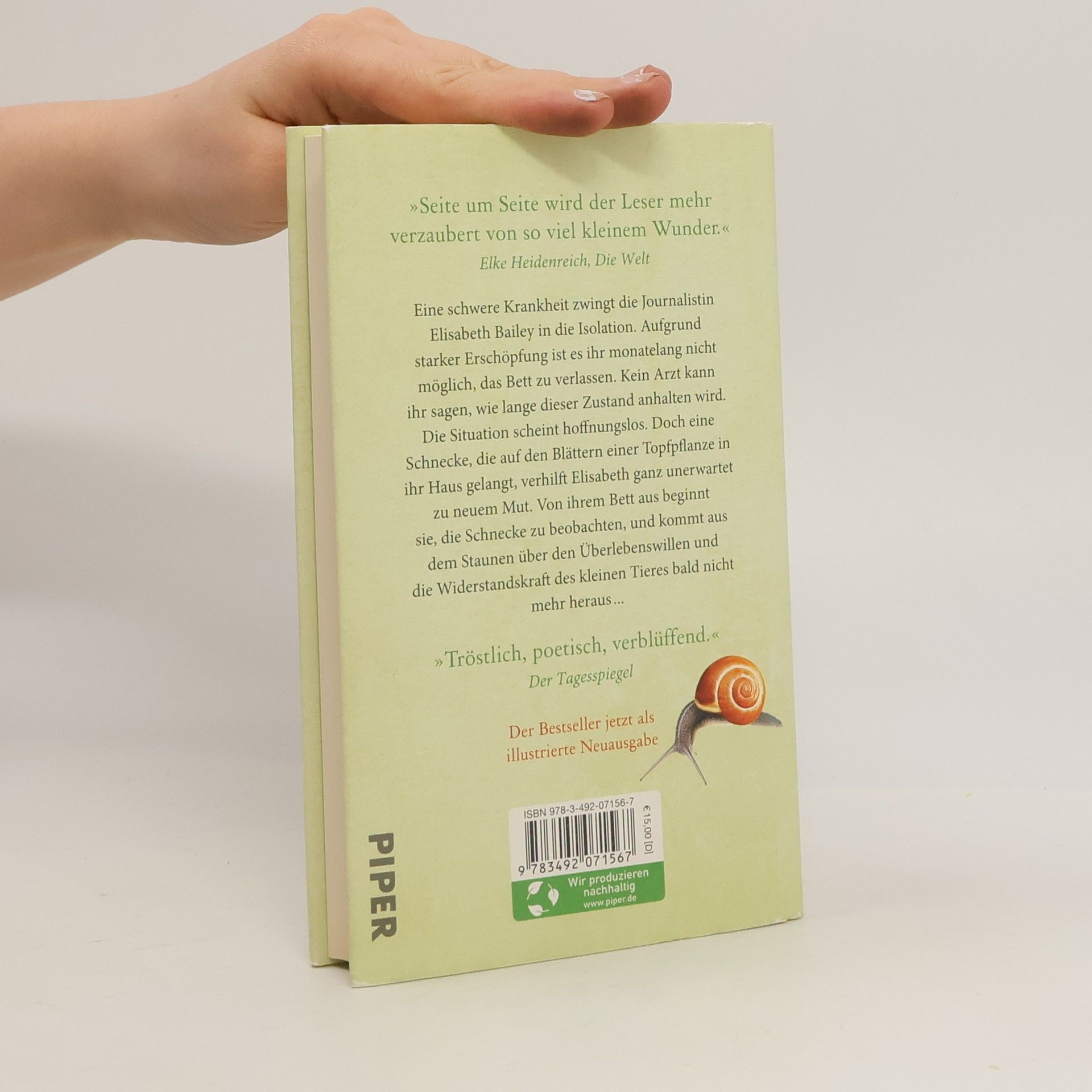 Tröstlich, einzigartig und inspirierend – diese illustrierte Neuausgabe ist die perfekte Lektüre für ungewisse Zeiten. Die Journalistin Elisabeth Bailey ist durch eine Krankheit ans Bett gefesselt. Als sie von einer Freundin eine Topfpflanze mit einer Schnecke geschenkt bekommt, beginnt sie, das Tier zu beobachten. Nachts wird die Schnecke aktiv, erkundet ihre Umgebung und zeigt faszinierende Verhaltensweisen. Bailey vertieft sich in die Biologie und Kulturgeschichte der Schnecke und entdeckt Erstaunliches über dieses oft unterschätzte Lebewesen. Dieses Buch ist ideal für alle, die achtsamer leben und die kleinen Wunder des Alltags schätzen möchten. Die Leser werden von der zarten, dem Leben zugewandten Erzählweise verzaubert und finden eine harmonische Verbindung zwischen Wissenschaft und Poesie. Es ist ein Erfahrungsbericht, der die Individualität und Persönlichkeit der Schnecke hervorhebt und gleichzeitig eine Respektbezeugung für das Leben darstellt. Mit seiner Mischung aus Bewunderung und Dankbarkeit ist es ein einzigartiges Werk, das sowohl als Trostpflaster als auch zur Entschleunigung dient.
