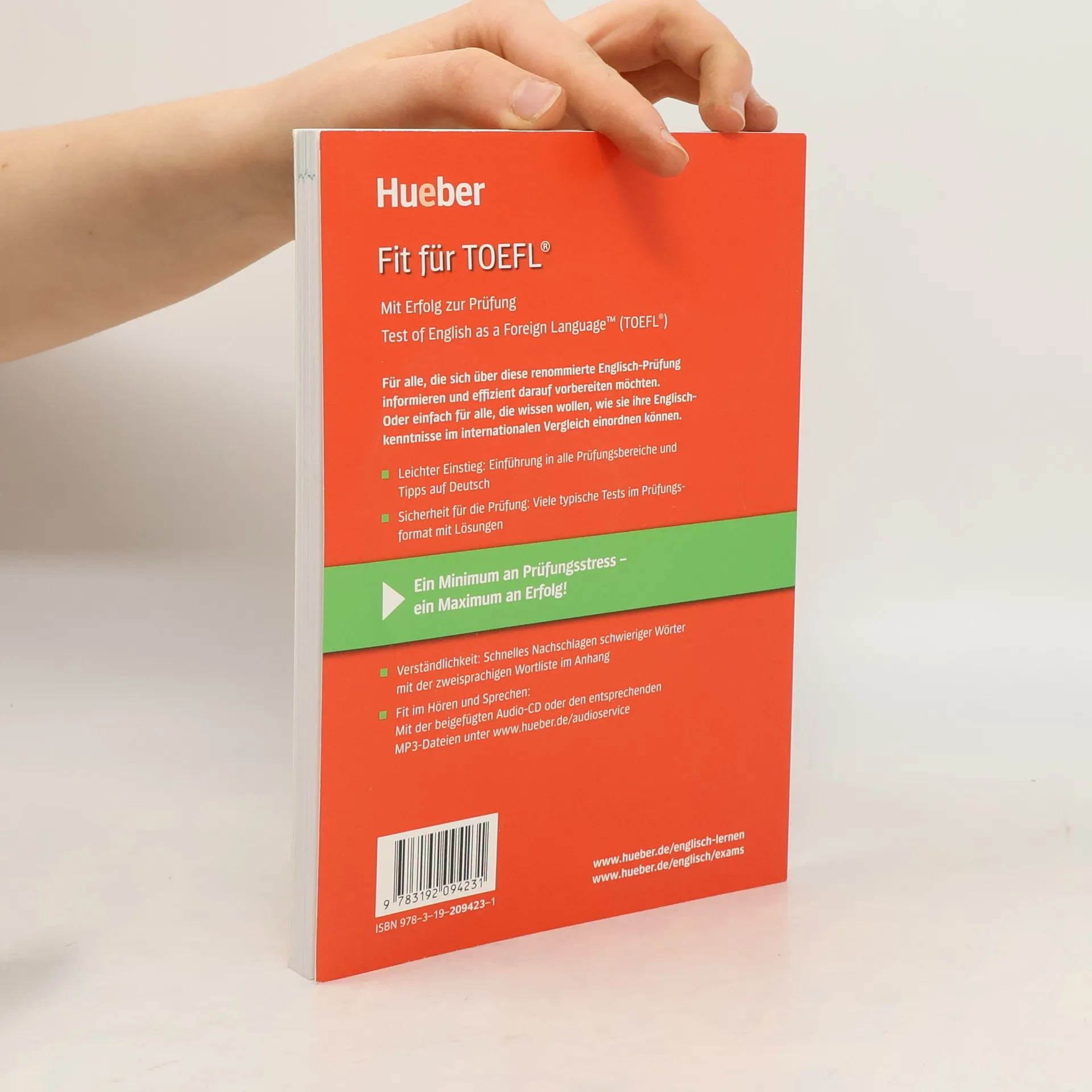 Der TOEFL® (Test of English as a Foreign Language) ist eine der bekanntesten internationalen Sprachprüfungen. Hochschulen und Universitäten im englischsprachigen Raum verlangen unter anderen den TOEFL® als sprachliche Zulassungsvoraussetzung. §Die Teststruktur ist so konzipiert, dass man auch 10 Minuten zwischendurch für die Prüfung üben kann und dank des handlichen Formats sind die Bücher überall dabei.§Fit für TOEFL® gibt die Sicherheit für das Bestehen der Prüfung durch gezielte und effiziente Prüfungs-vorbereitung.